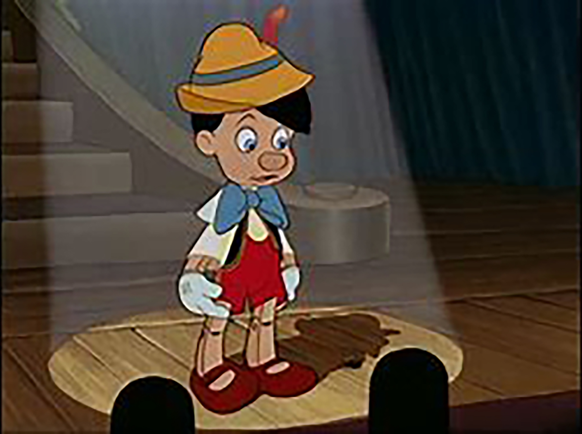 The original plans for the movie were vastly different than the film which was released. Walt, always the perfectionist halted the project halfway and ordered the story re-written and the characters re-done. One of the major things Walt did not like was that Pinocchio looked exactly like a real puppet, wooden hands, pointed nose, etc. Eventually the animators designed him to look more like a real boy, down to five fingers with Mickey Mouse type gloves on them. Walt felt that people would express sympathy for a boy more than an actual puppet. Even Jiminy Cricket originally looked more like a real Cricket, than the softer, more human looking character that Walt finally approved on.