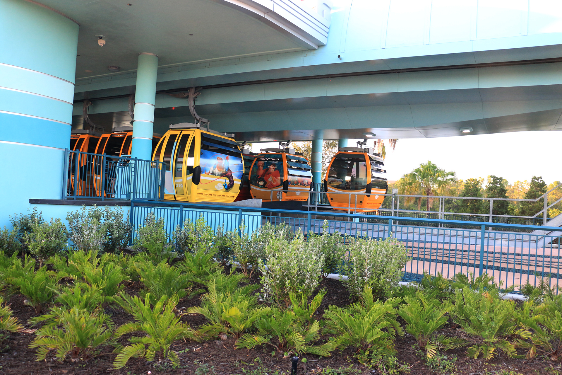 This route to EPCOT is the longest, at approximately 12 minutes. This route, as all the others, offers amazing vistas of Walt Disney World that can be seen nowhere else. The views of the Caribbean Beach resort below are beautiful. As we pulled into the Riviera Resort station, we all told to stay in the gondolas, to continue on to EPCOT’s station at International Gateway, because the Resort is not yet open. After arriving at EPCOT station, we have to disembark and re-enter the station for the return trip to Caribbean Beach, then the Studios. The most impressive thing about the new Skyliner is how quiet and serene it is! This is going to enhance these four resorts because of the ease of getting around. This new Skyliner will also alleviate the volume of passengers on the busses.
