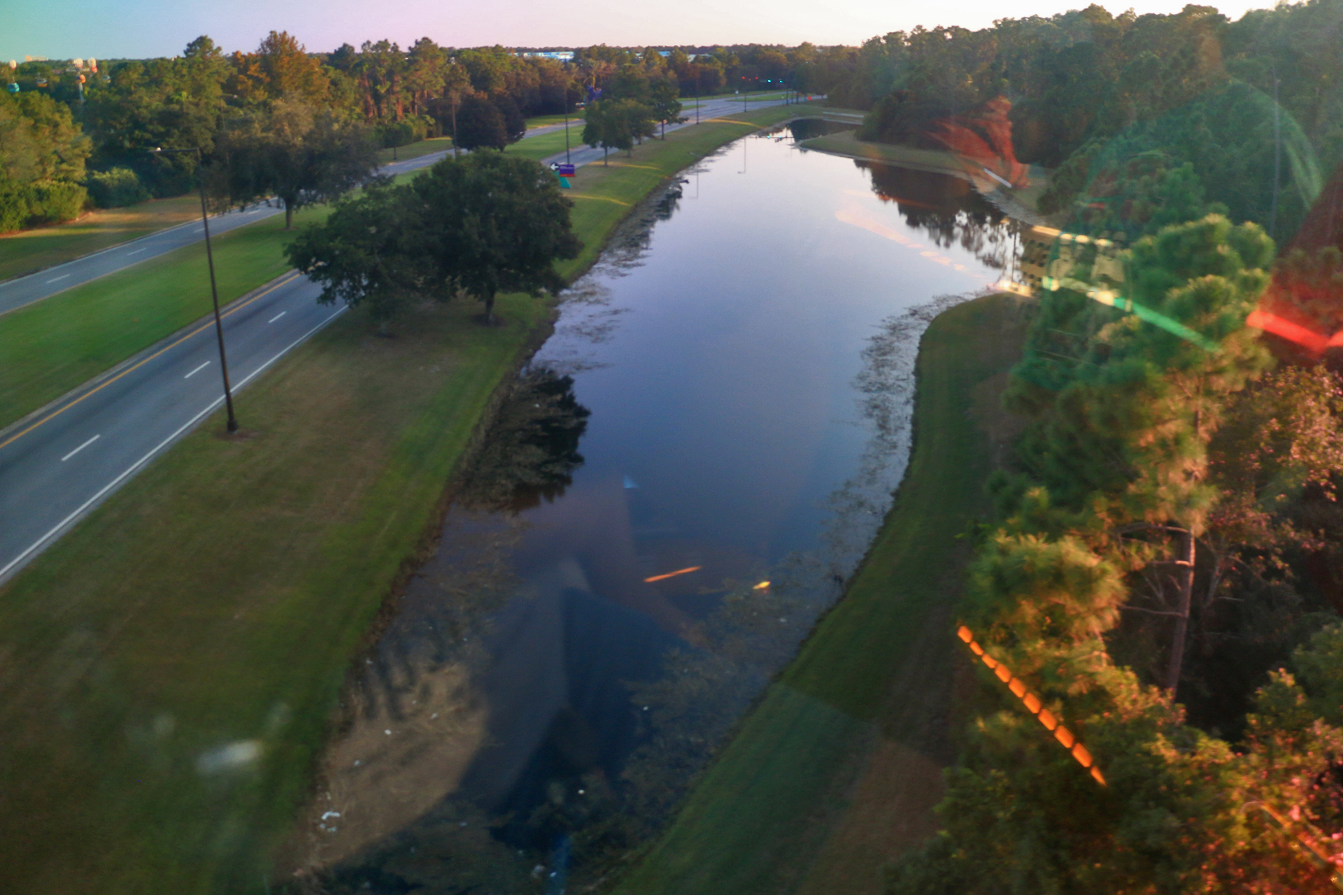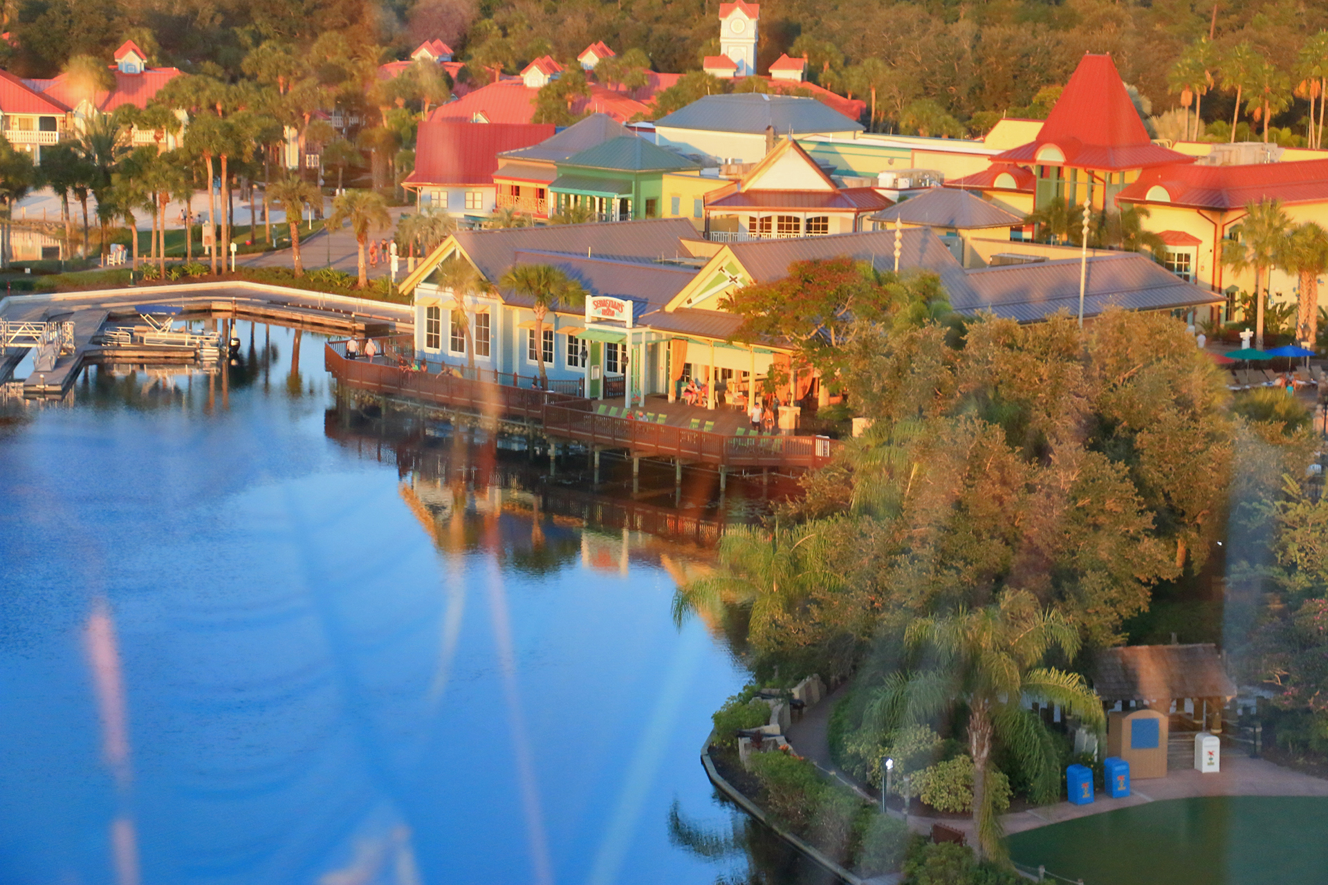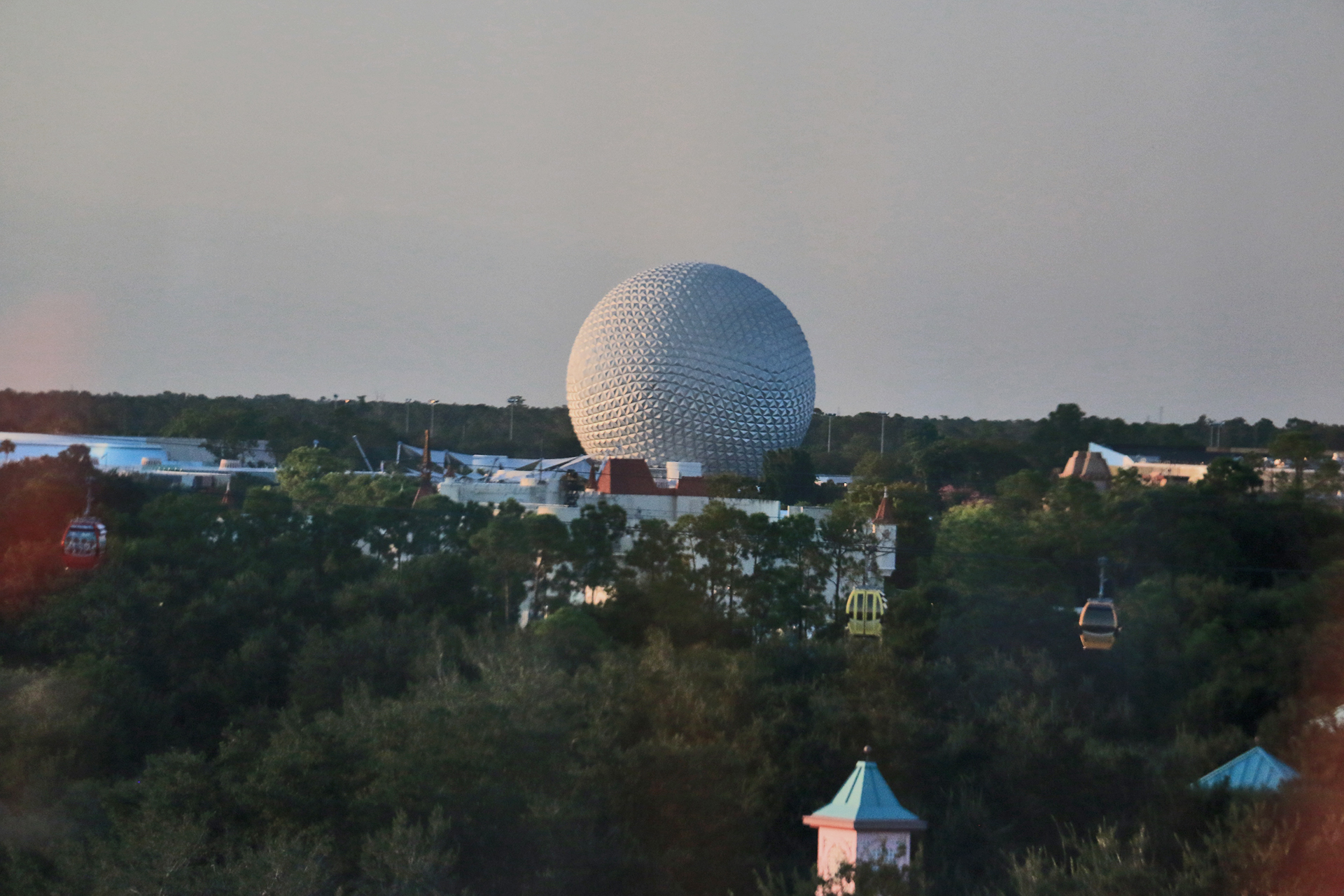 After entering our vehicle, it slowly and very quietly began its ascent. The views outside were spectacular. Now there is only one thing that for me, the jury is still out on. The gondolas are not air-conditioned, and Disney said that it should not be a concern in the Florida summer. The day we went, it was in the 90’s, but for the first time in many months, the humidity was very low. We got on at 6:30pm, still warm but not humid. The only ventilation in the gondolas are upper vents forward and back and as the Skyliner moves, there seems to be a good airflow. However, as the gondola made the slow turn towards EPCOT, in that brief time, it did get noticeable warmer. I will ride this on a very hot day and give a final opinion.