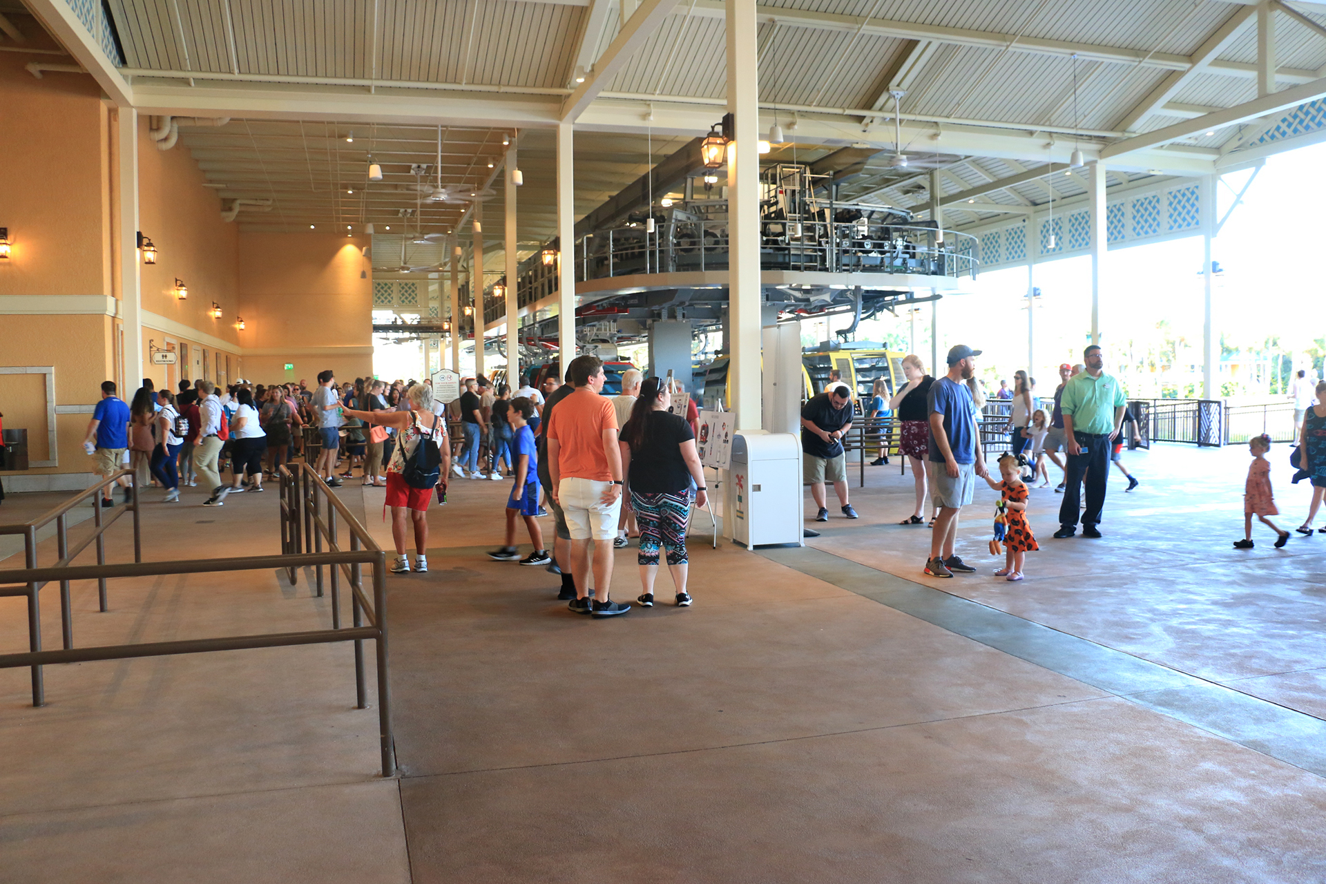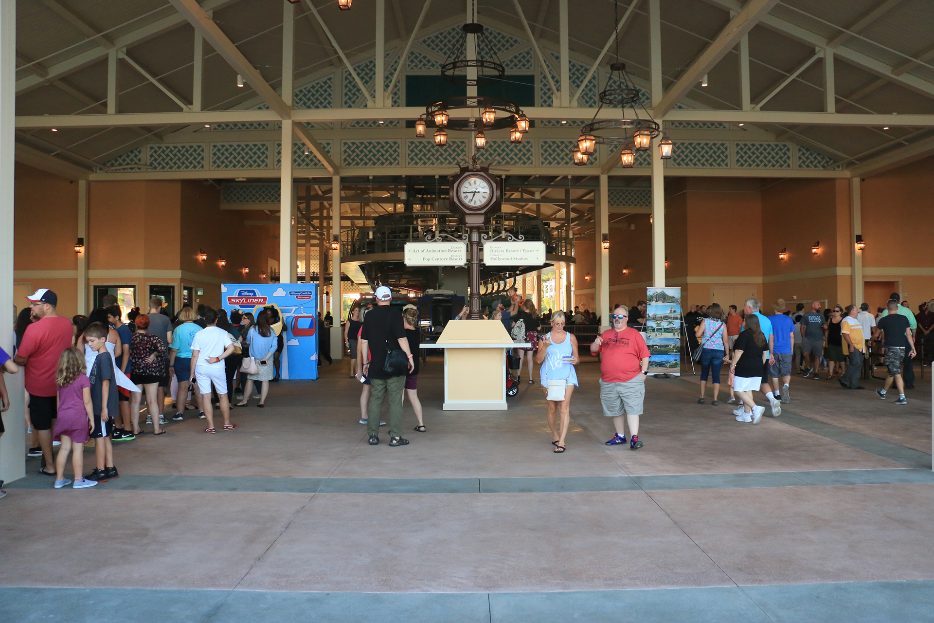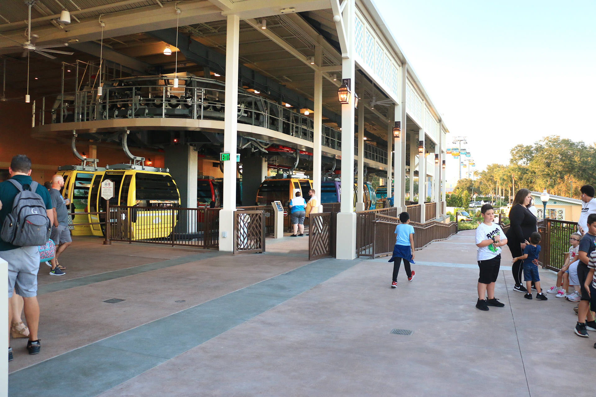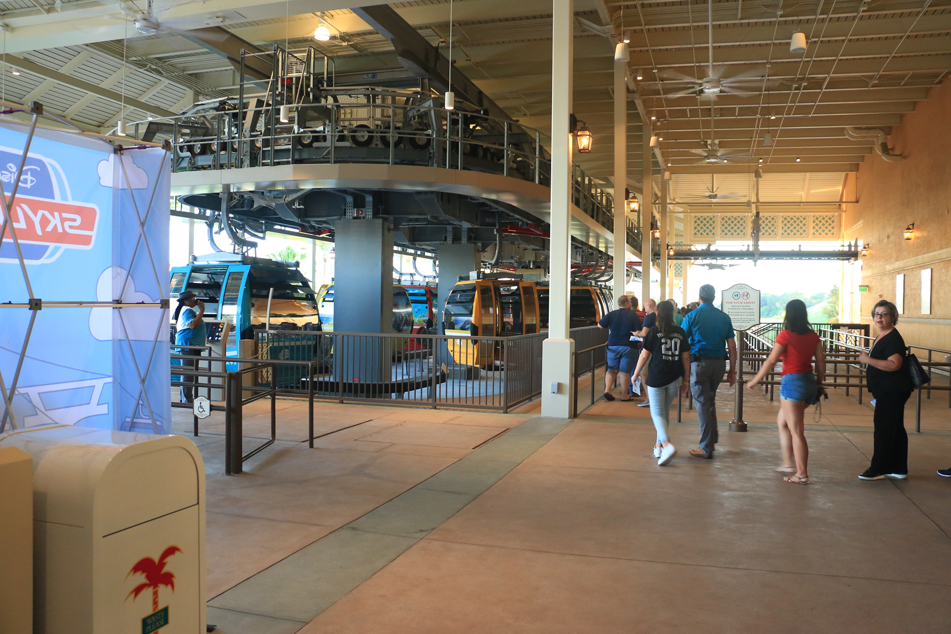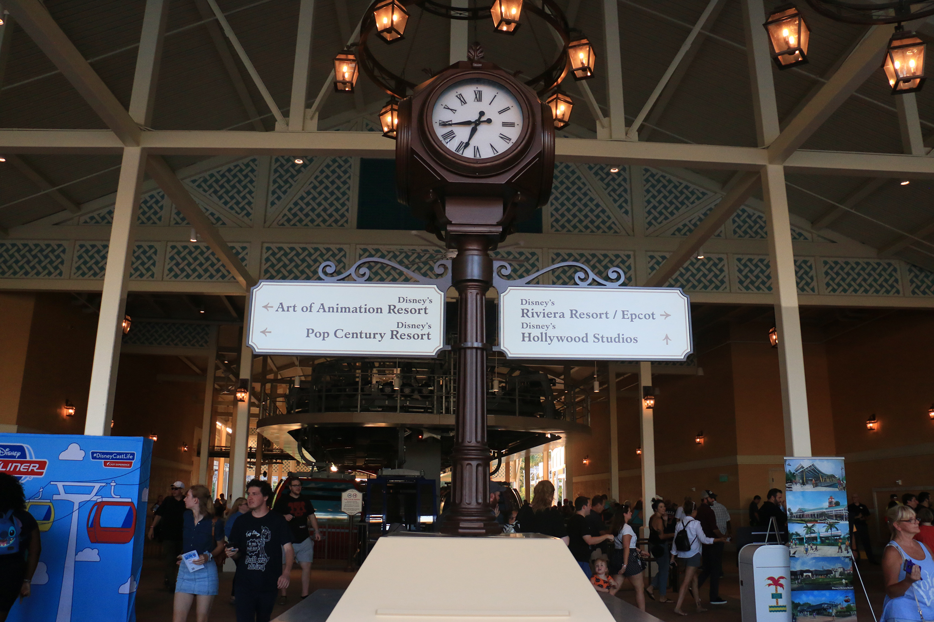 If it does get uncomfortably hot, I believe the solution would be to install a large overhead exhaust or intake fan in the roof, that would keep the airflow moving and alleviate the problem without air conditioning. But I digress. After arriving at the Caribbean Beach resort station, we exited the gondola. The station is large and airy, with clear signage to either the Art of Animation or Pop Century, or the new Riviera Resort/EPCOT or back to the Studios. We chose to check out the Rivera route and EPCOT.