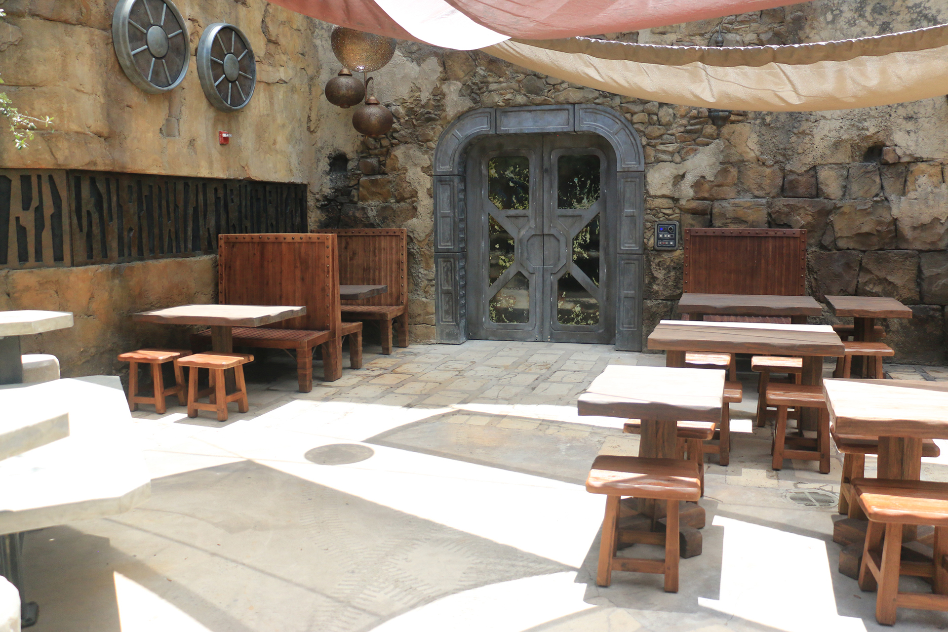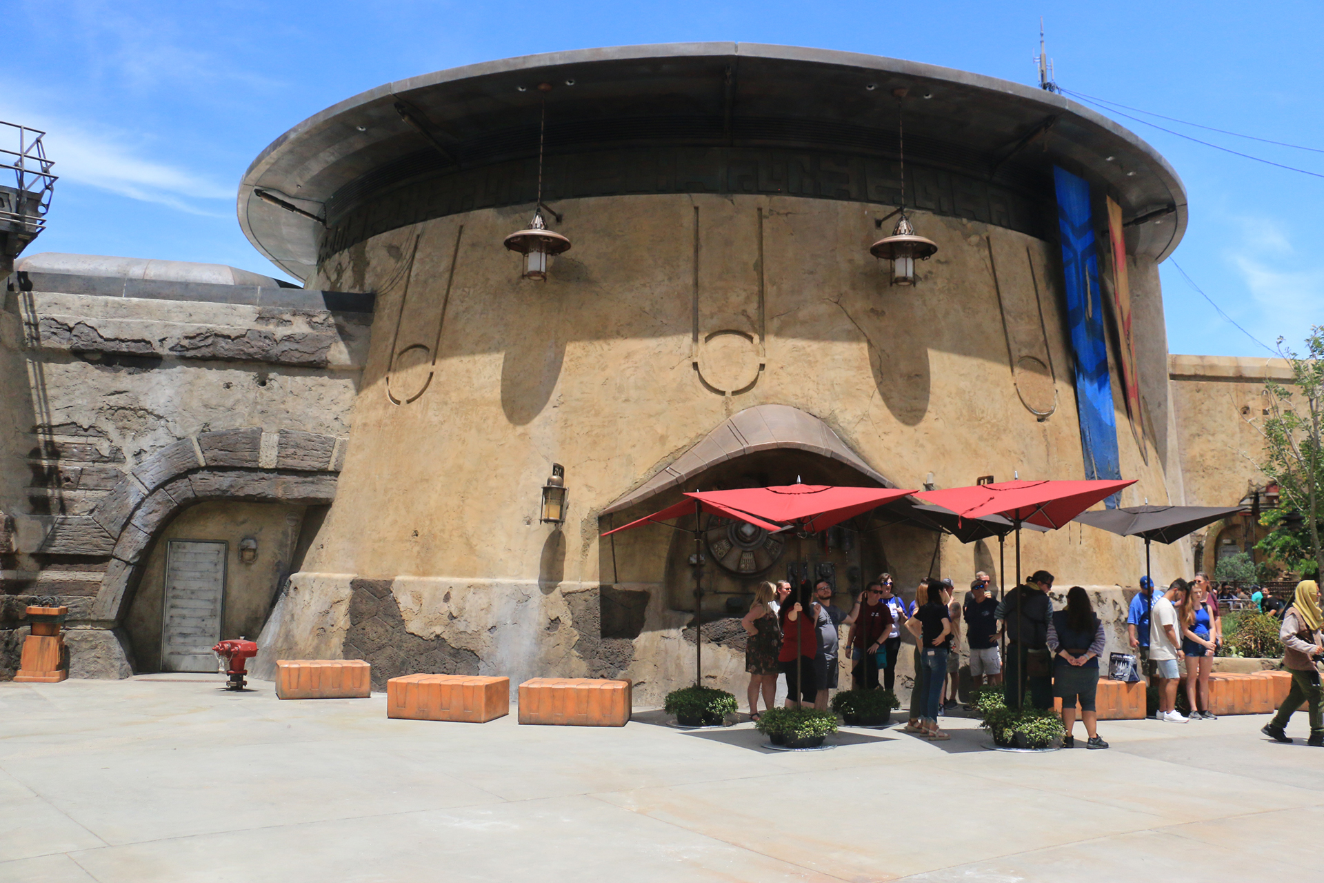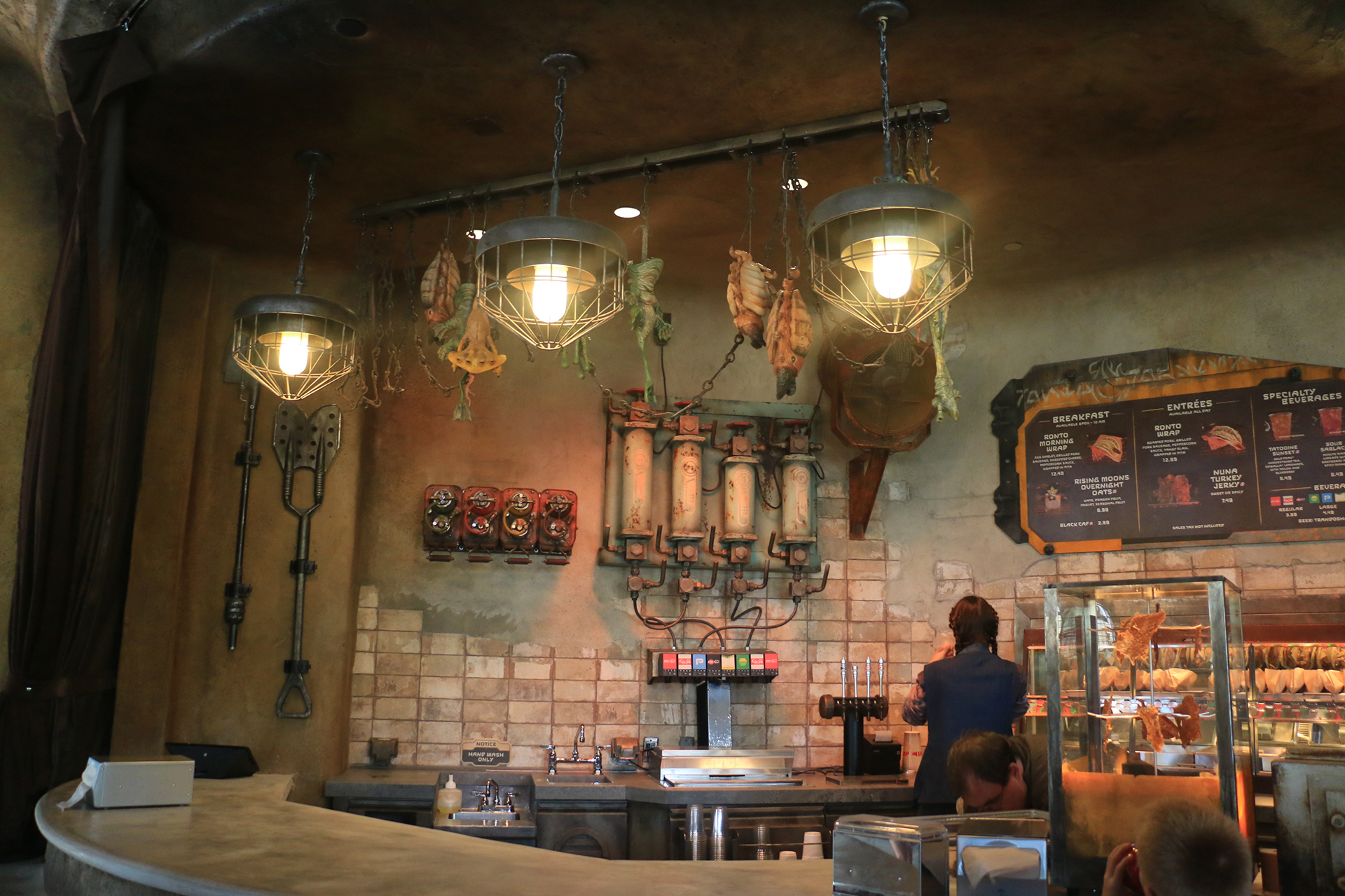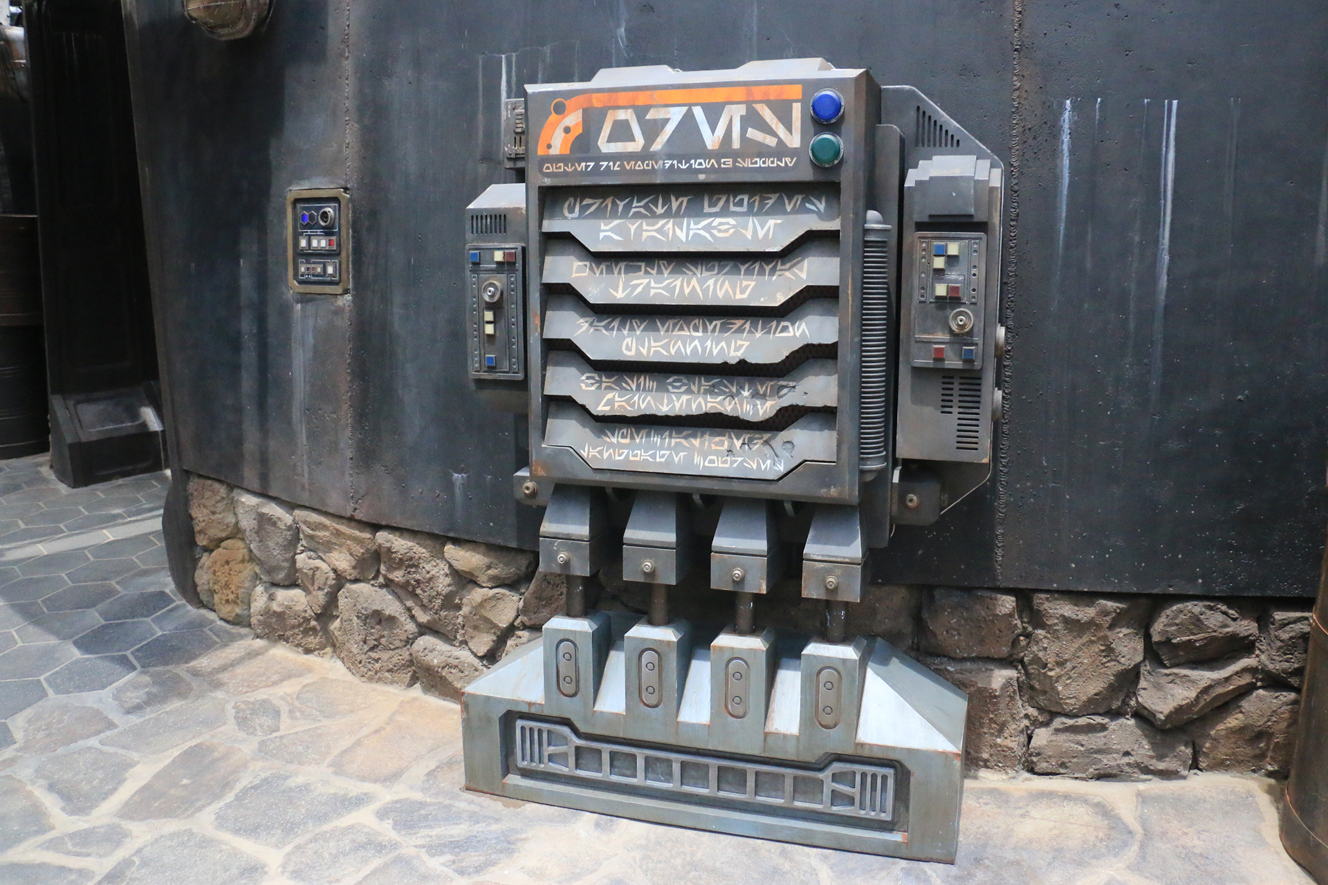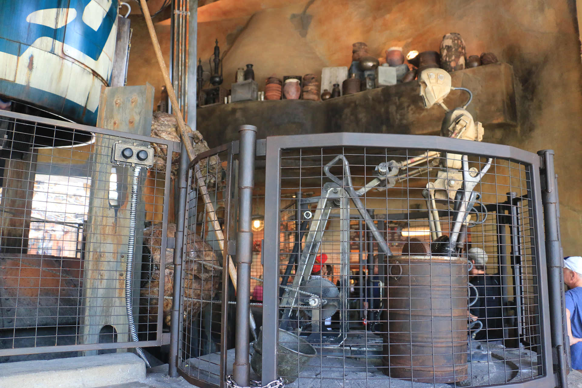 We loved Oga’s Cantina! Now remember, this is not the Mos Eisley Cantina in the Port of Mos Eisley on planet Tatoonie in the first Star Wars, A New Hope. You will not see that intergalactic band, but you will see the DJ R-3X (You will remember him as Captain Rex, again voiced by actor Paul Reubens) playing all your favorite Eighties synth-pop vibe tunes. There are Alcoholic and non-alcoholic offerings here. Again, take your time and observe all the amazing details and sights in the bar.