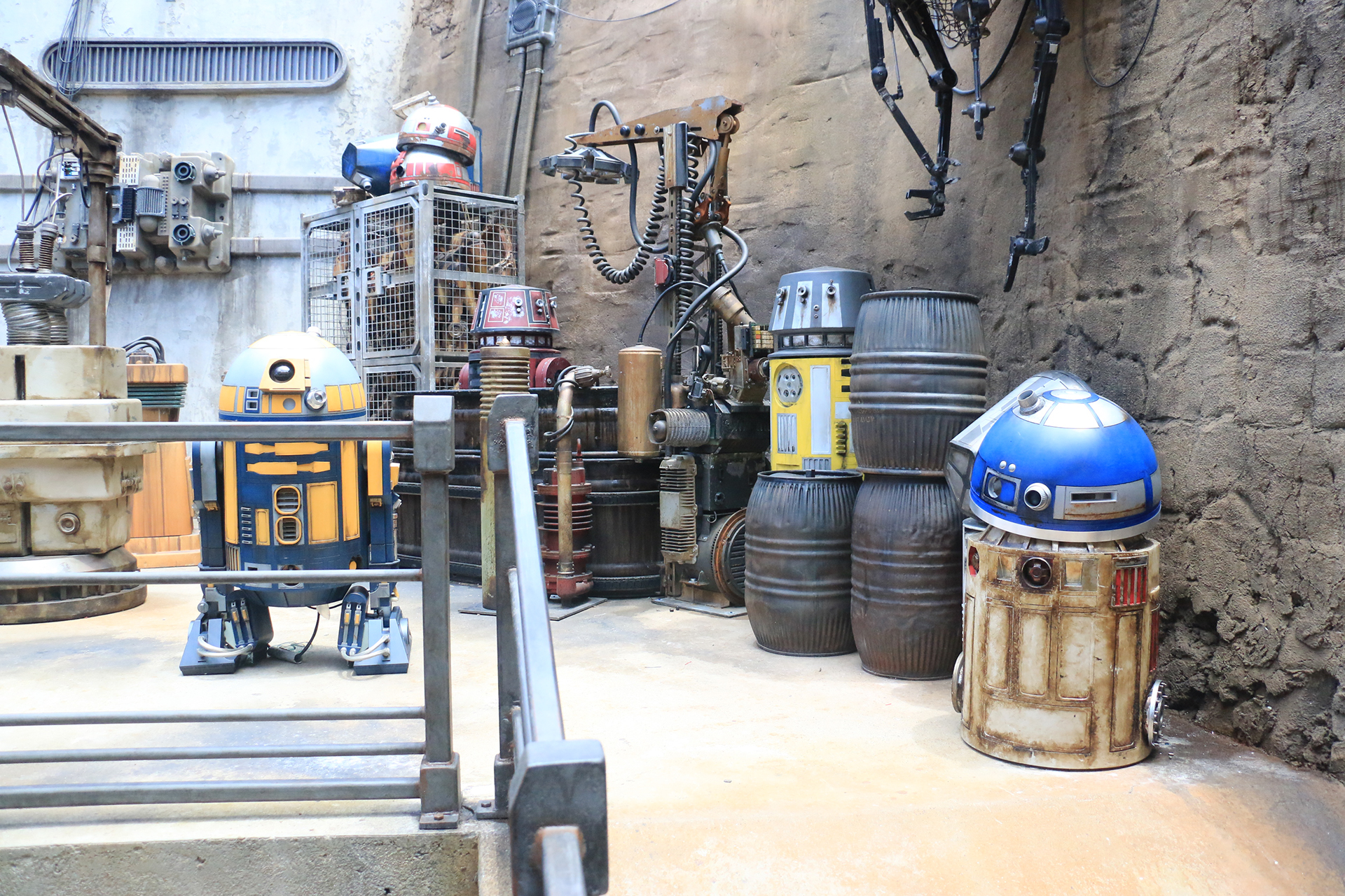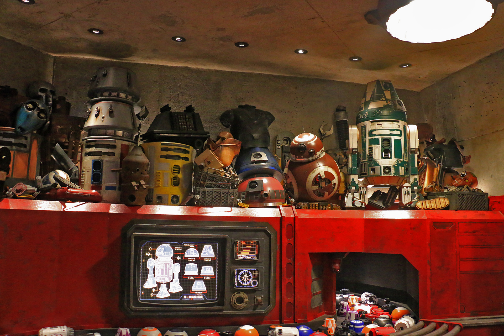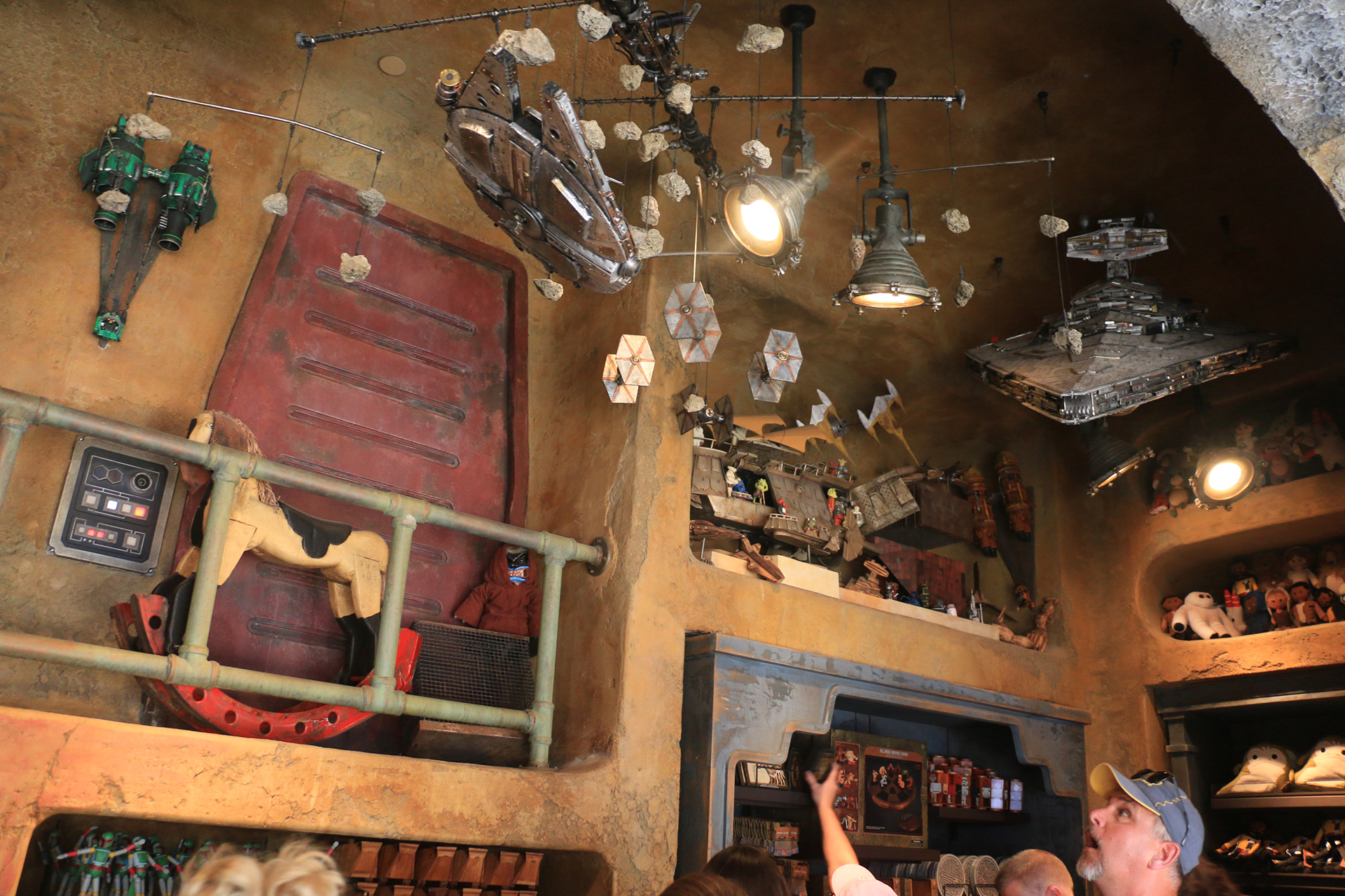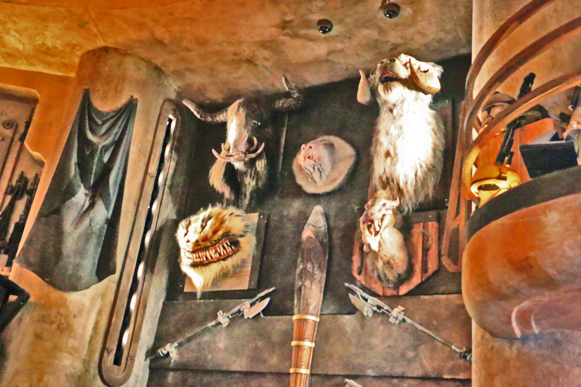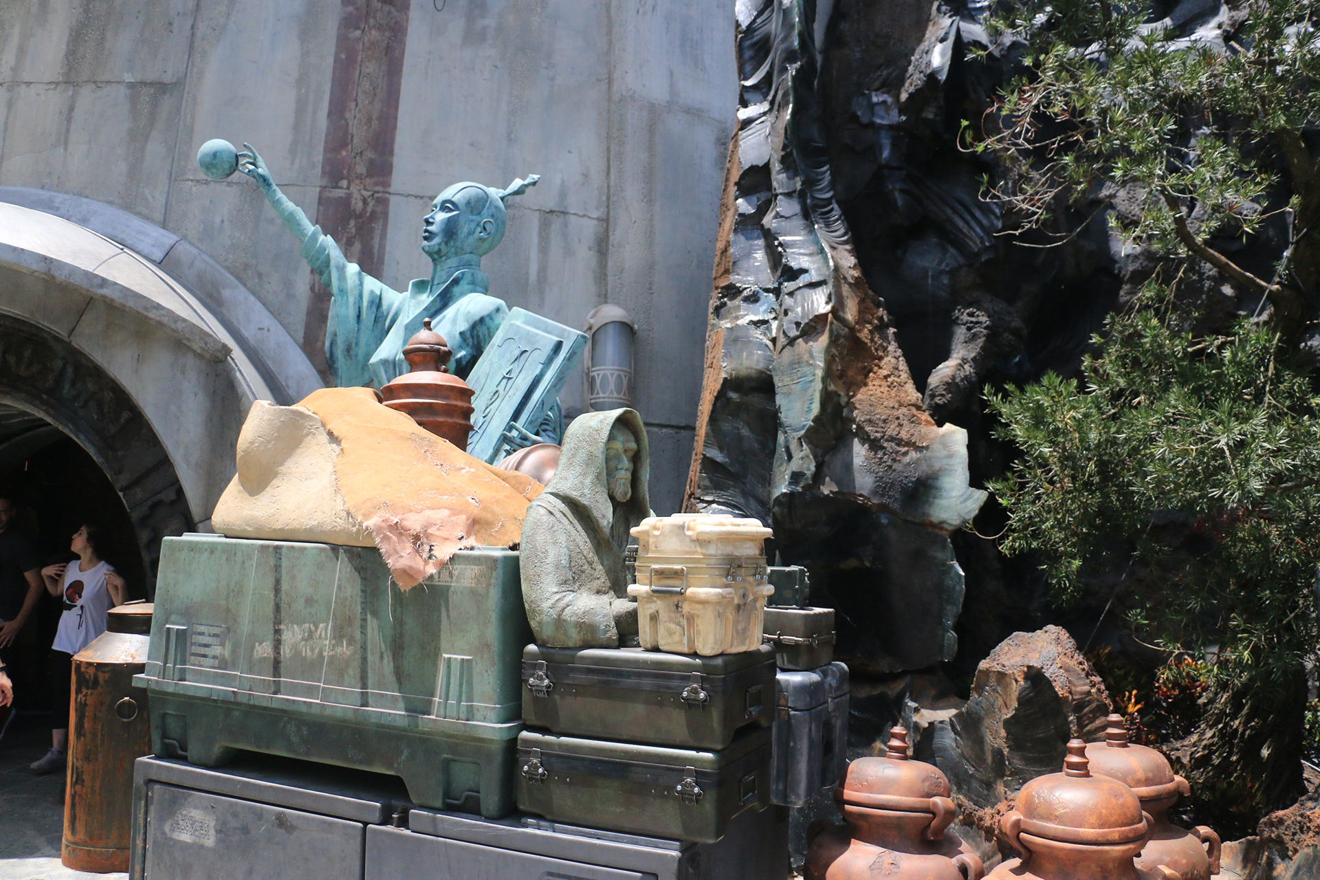 We loved Oga’s Cantina! Now remember, this is not the Mos Eisley Cantina in the Port of Mos Eisley on planet Tatoonie in the first Star Wars, A New Hope. You will not see that intergalactic band, but you will see the DJ R-3X (You will remember him as Captain Rex, again voiced by actor Paul Reubens) playing all your favorite Eighties synth-pop vibe tunes. There are Alcoholic and non-alcoholic offerings here. Again, take your time and observe all the amazing details and sights in the bar.