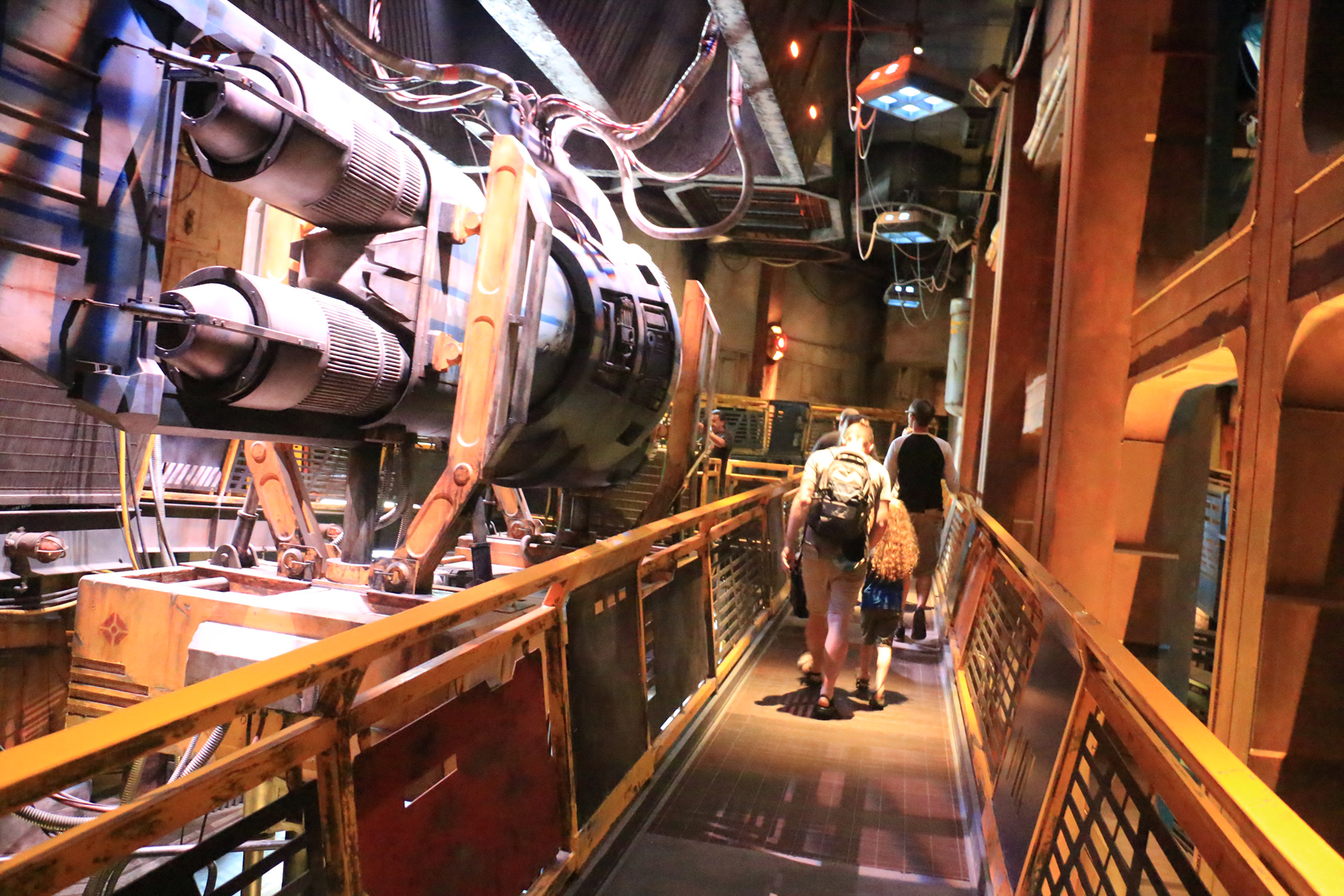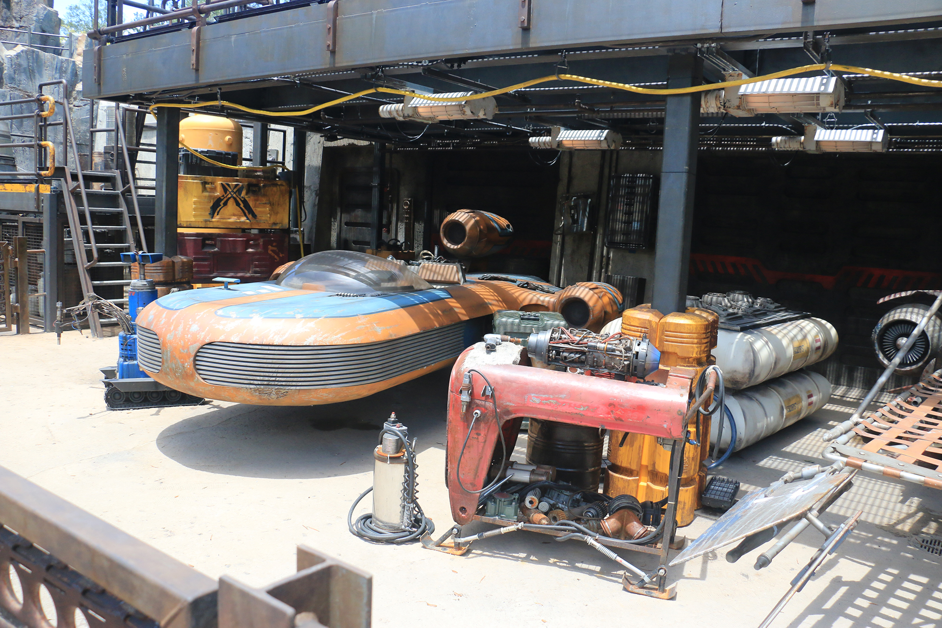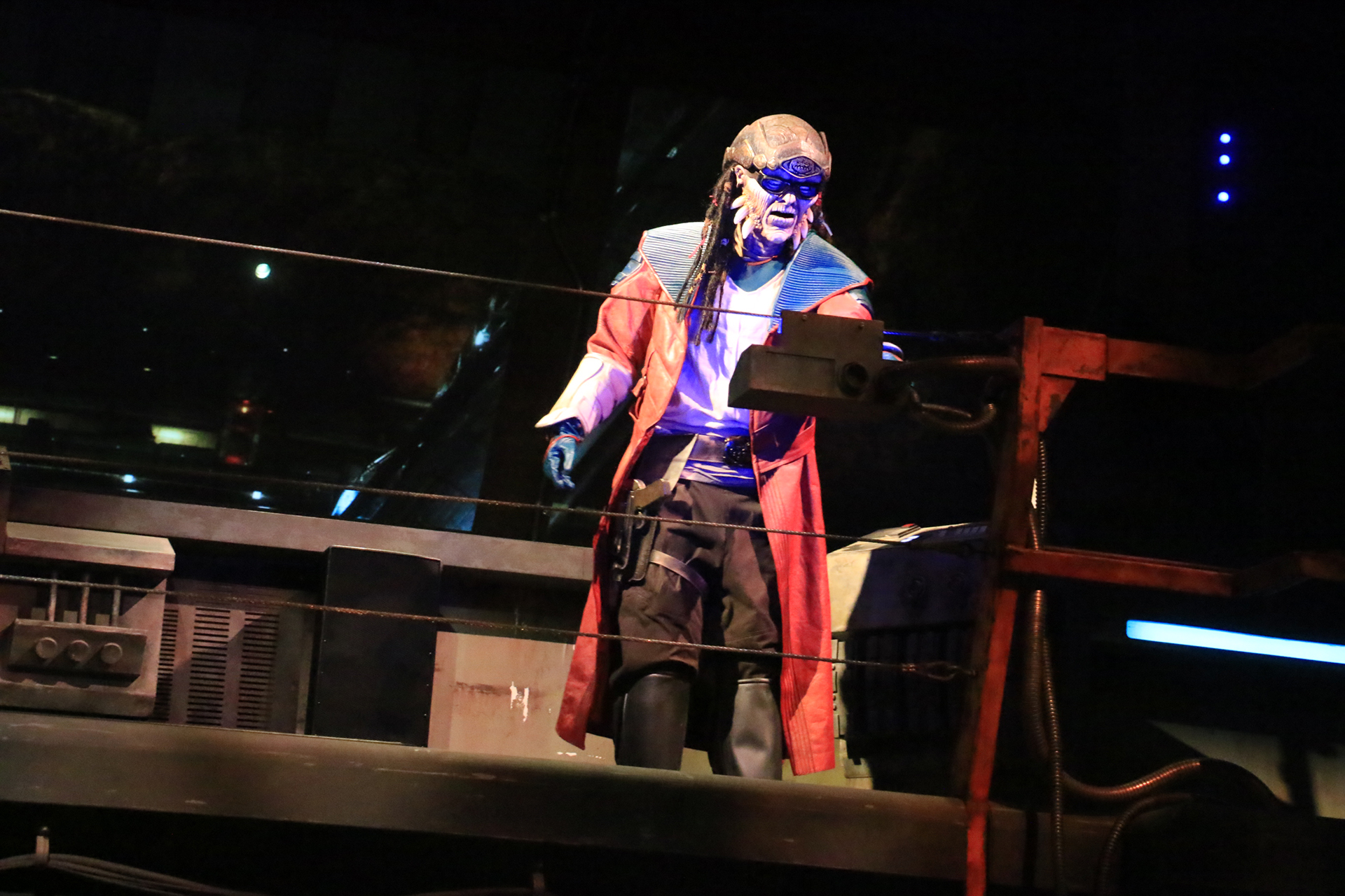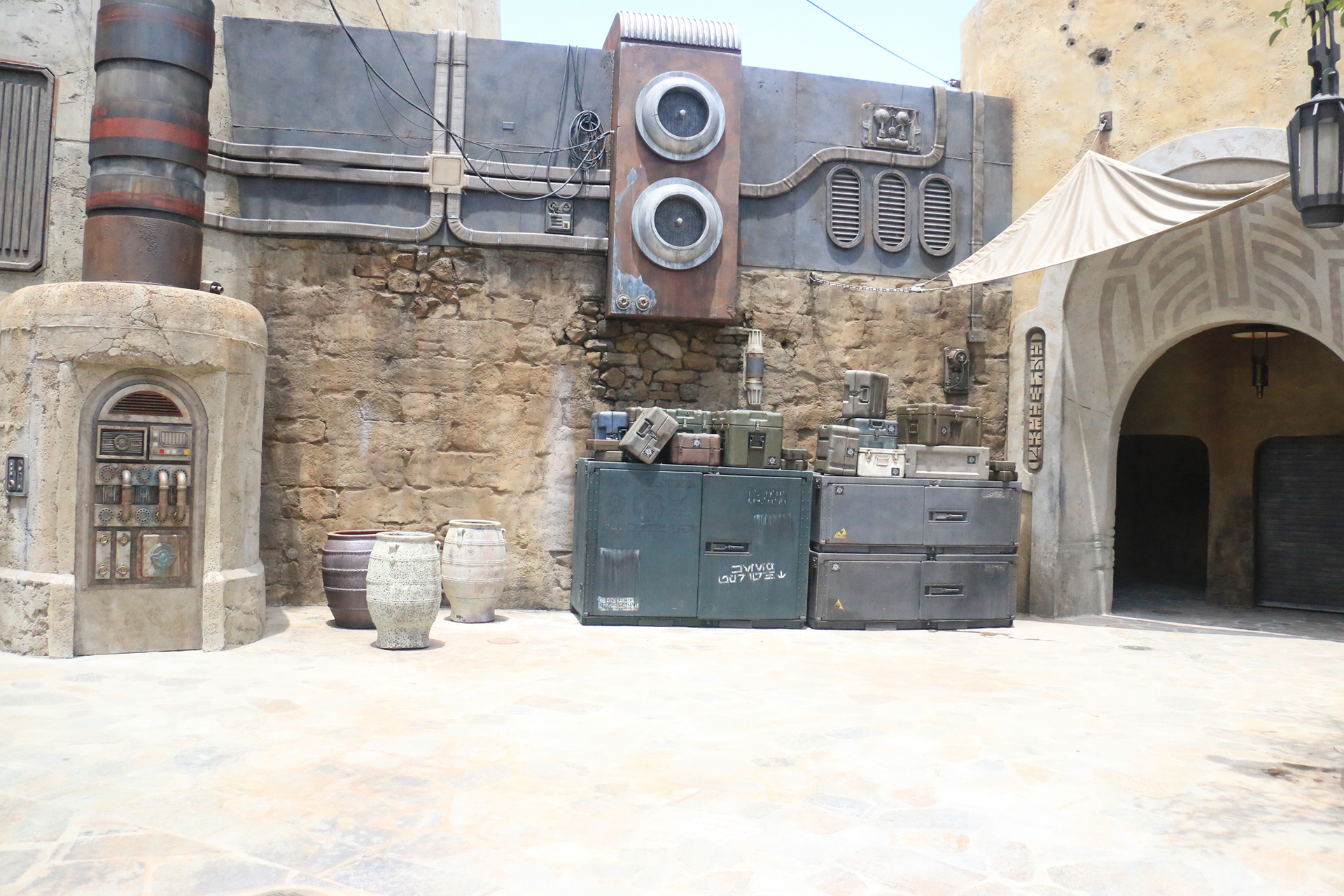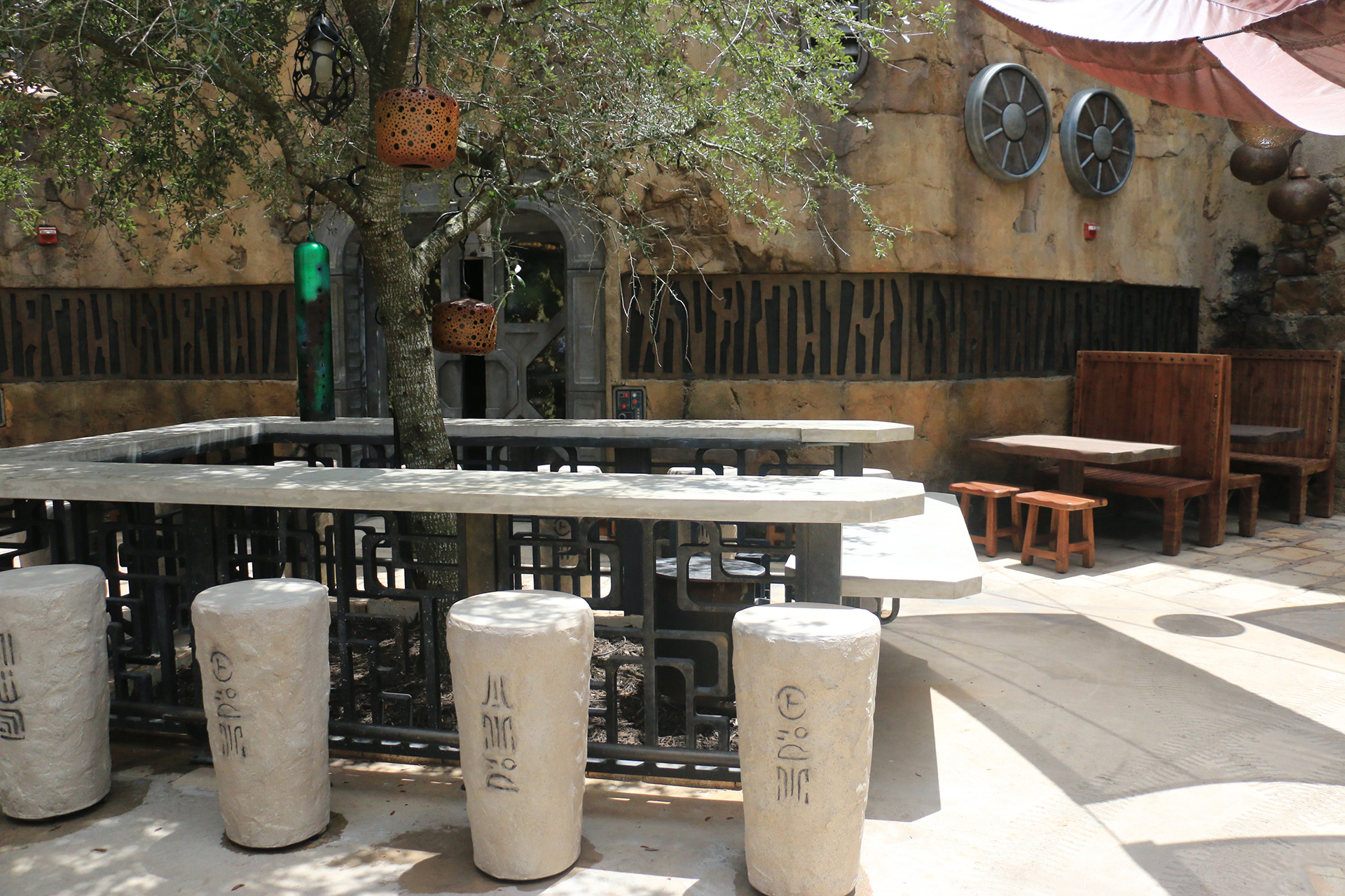 We loved Oga’s Cantina! Now remember, this is not the Mos Eisley Cantina in the Port of Mos Eisley on planet Tatoonie in the first Star Wars, A New Hope. You will not see that intergalactic band, but you will see the DJ R-3X (You will remember him as Captain Rex, again voiced by actor Paul Reubens) playing all your favorite Eighties synth-pop vibe tunes. There are Alcoholic and non-alcoholic offerings here. Again, take your time and observe all the amazing details and sights in the bar.