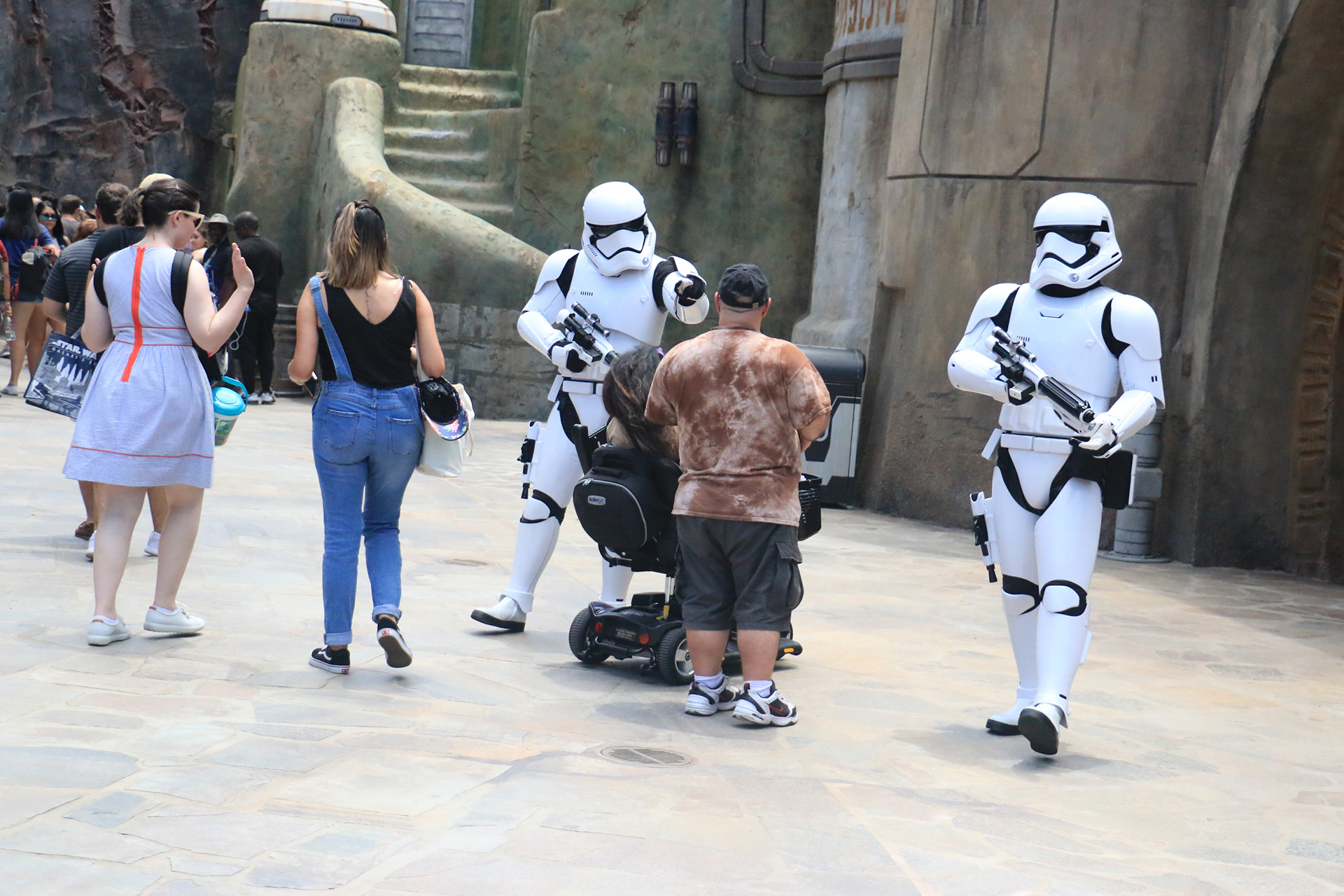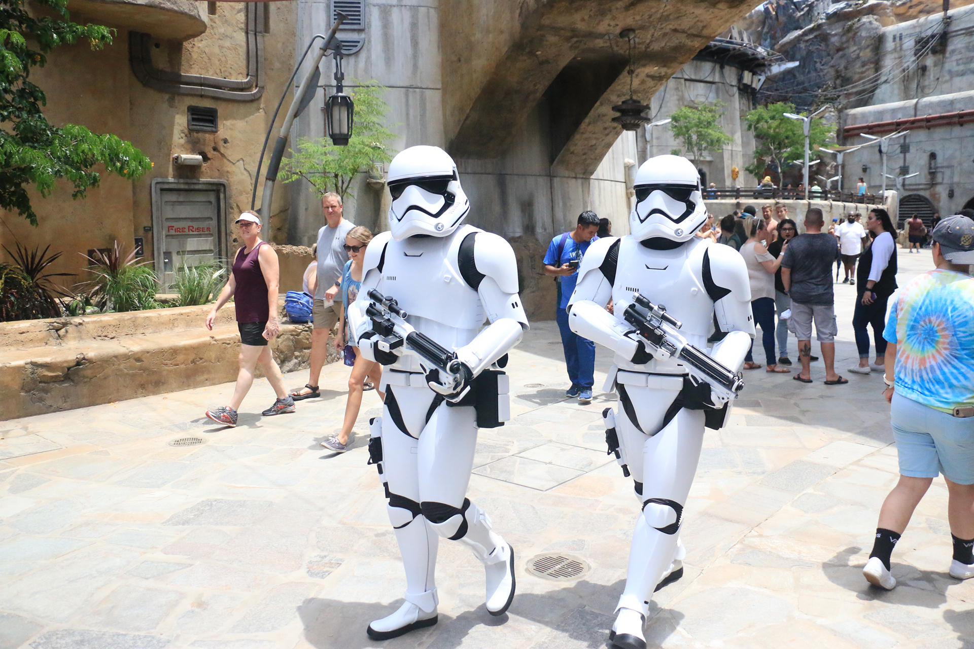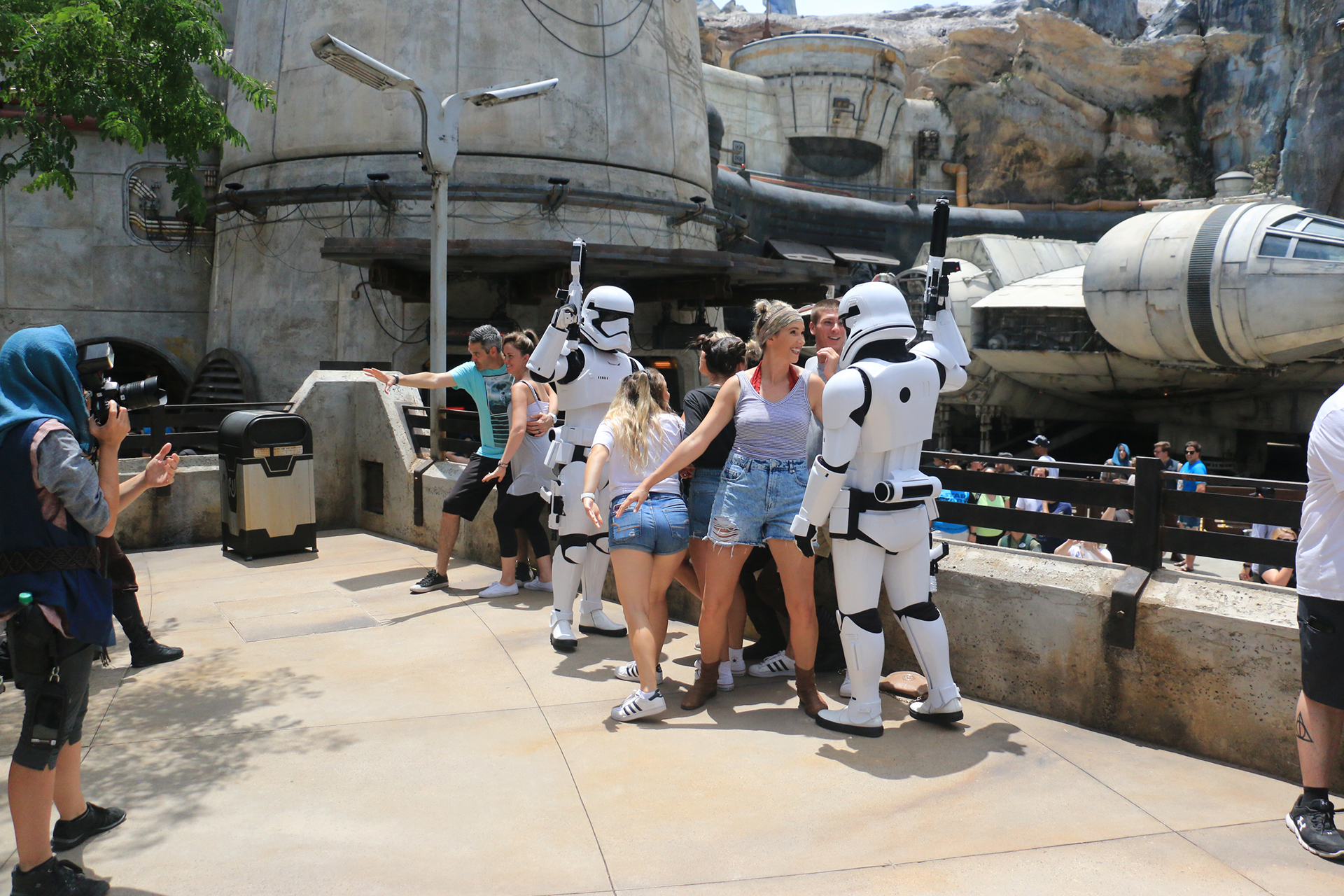 From Savi’s workshop to Oga’s Cantina, The Market, The Resistance Supply, Dok-Ondar’s Den of antiquities and everything in between, this is the ultimate in Disney Storytelling and immersiveness. When you first enter, you will be continually turning your head back and forth, there is so much to see. Try to avoid this, and slowly absorb the intricate and fascinating details in EVERYTHING in this land. The Imagineers left not one stone unturned. This land is as detailed and story perfect as Animal Kingdoms’ Pandora, the World of Avatar. As you walk this Black Spire Outpost, with Storm Troopers walking around, the Millennium Falcon docked in the background, and all the sights and sounds around you, you are on the planet Batuu. You cannot believe that any moment something is about to happen and you will be right in the middle of everything!