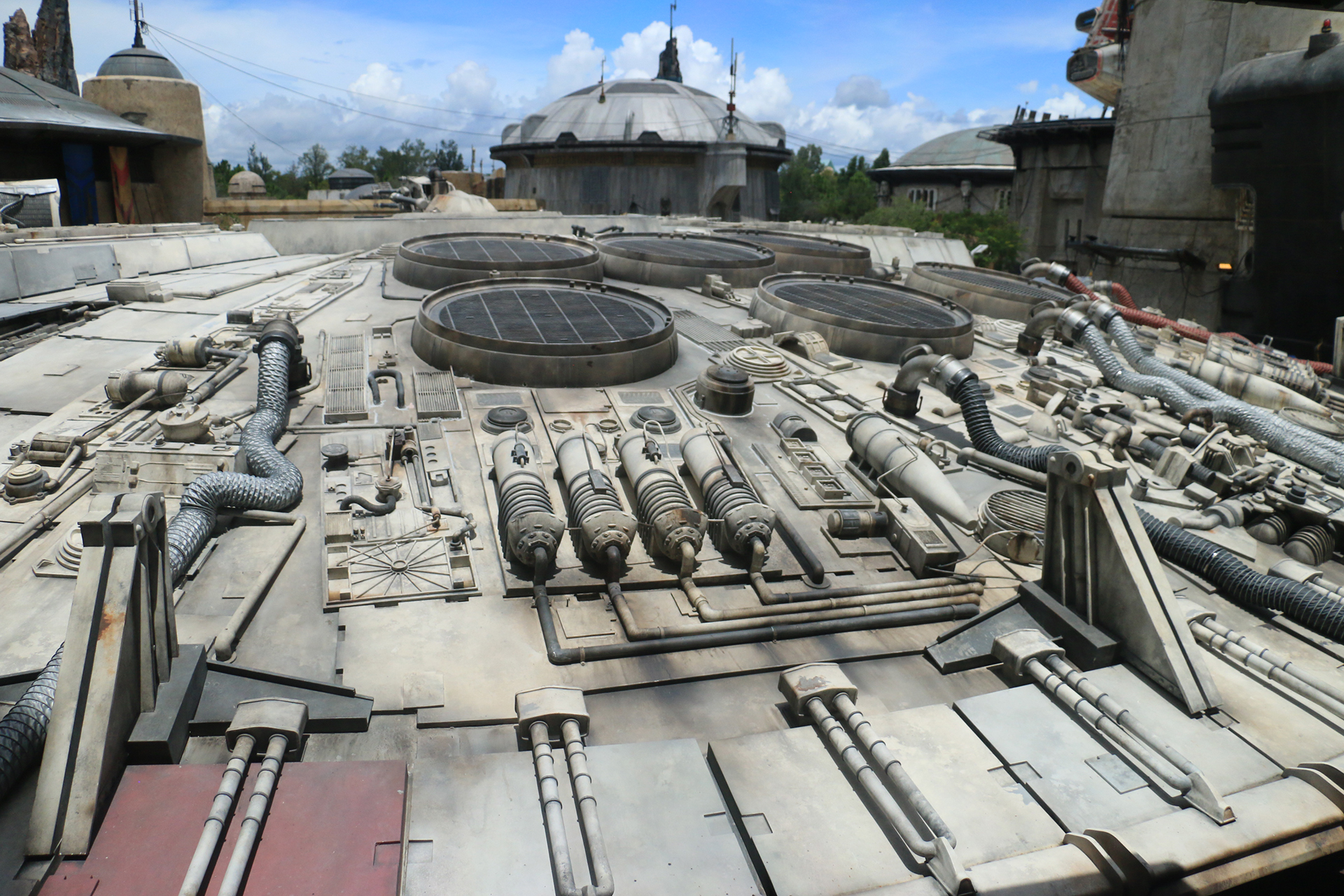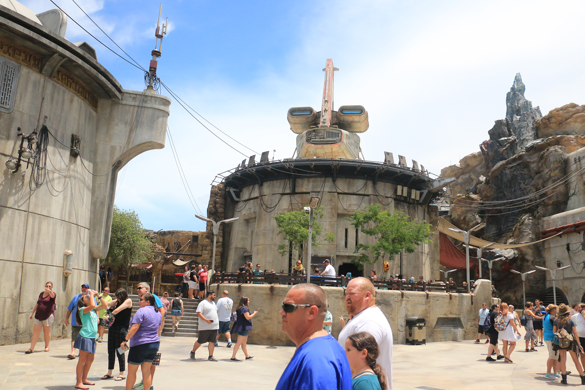 The only attraction open this day was The Millennium Falcon, Smugglers Run. Slated to open soon is the Star Wars: Rise of the Resistance. We rode the Millennium Falcon three times. This attraction is similar to Mission Space in EPCOT. There are six positions in the cockpit of the Falcon…two pilots, engineers and gunners, and like Mission Space, each has their own tasks to perform. That is where the similarity ends. This attraction is so much more immersive, and of course the technology is much more advanced. Needless to say, I liked the job of gunner the best. You have to blow away all the obstacles so you can complete the mission!