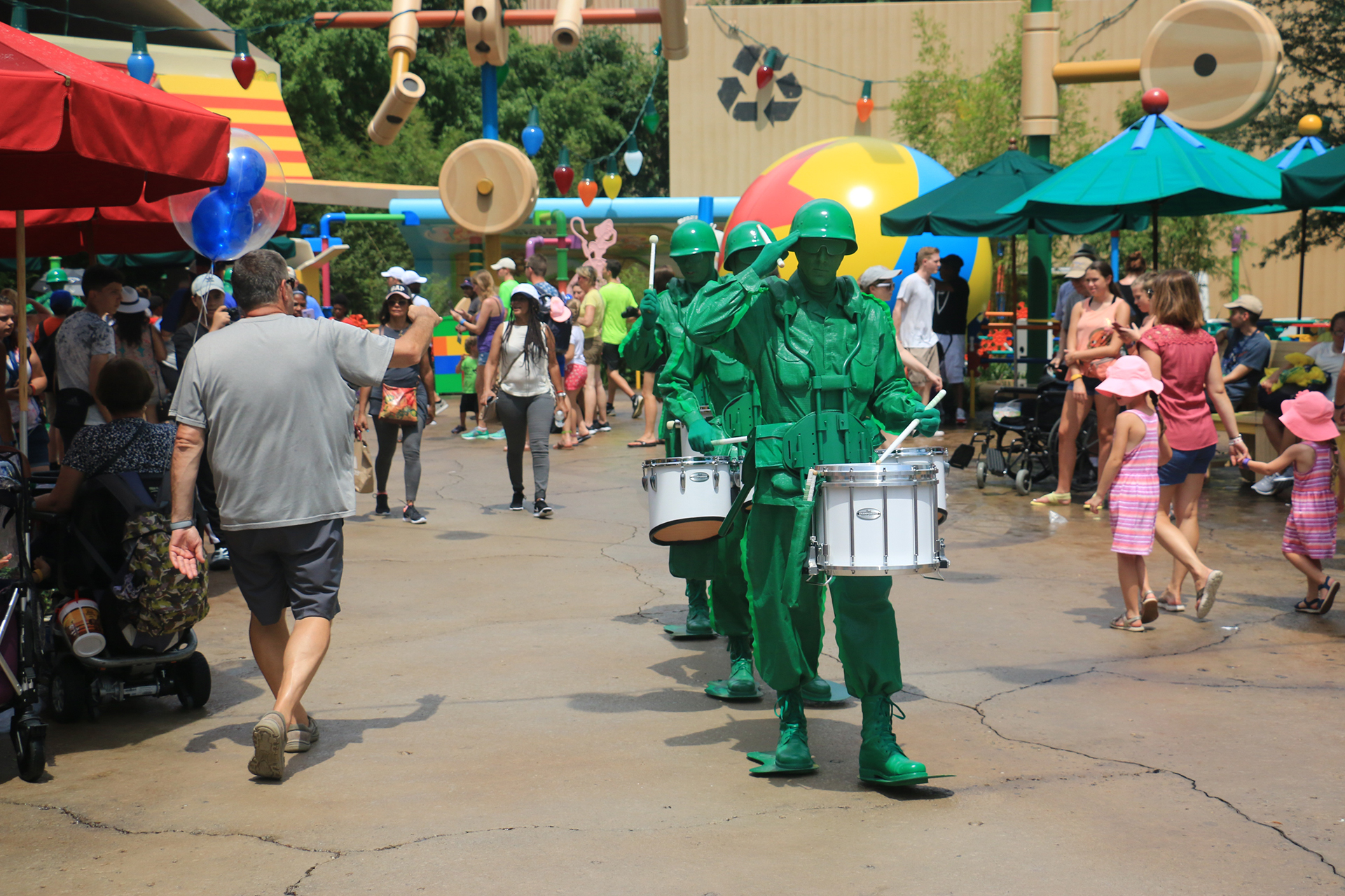 You will encounter the “Green Army Men” drum Corps as they roam around the land. They will stop and play games with the guests, one game called “Sarge Says” They will invite guests to be part of boot camp drills, chants and games, all letting them become volunteer Green Army Men. They will also play the snare drum, bass and tenor drums in perfect cadence.