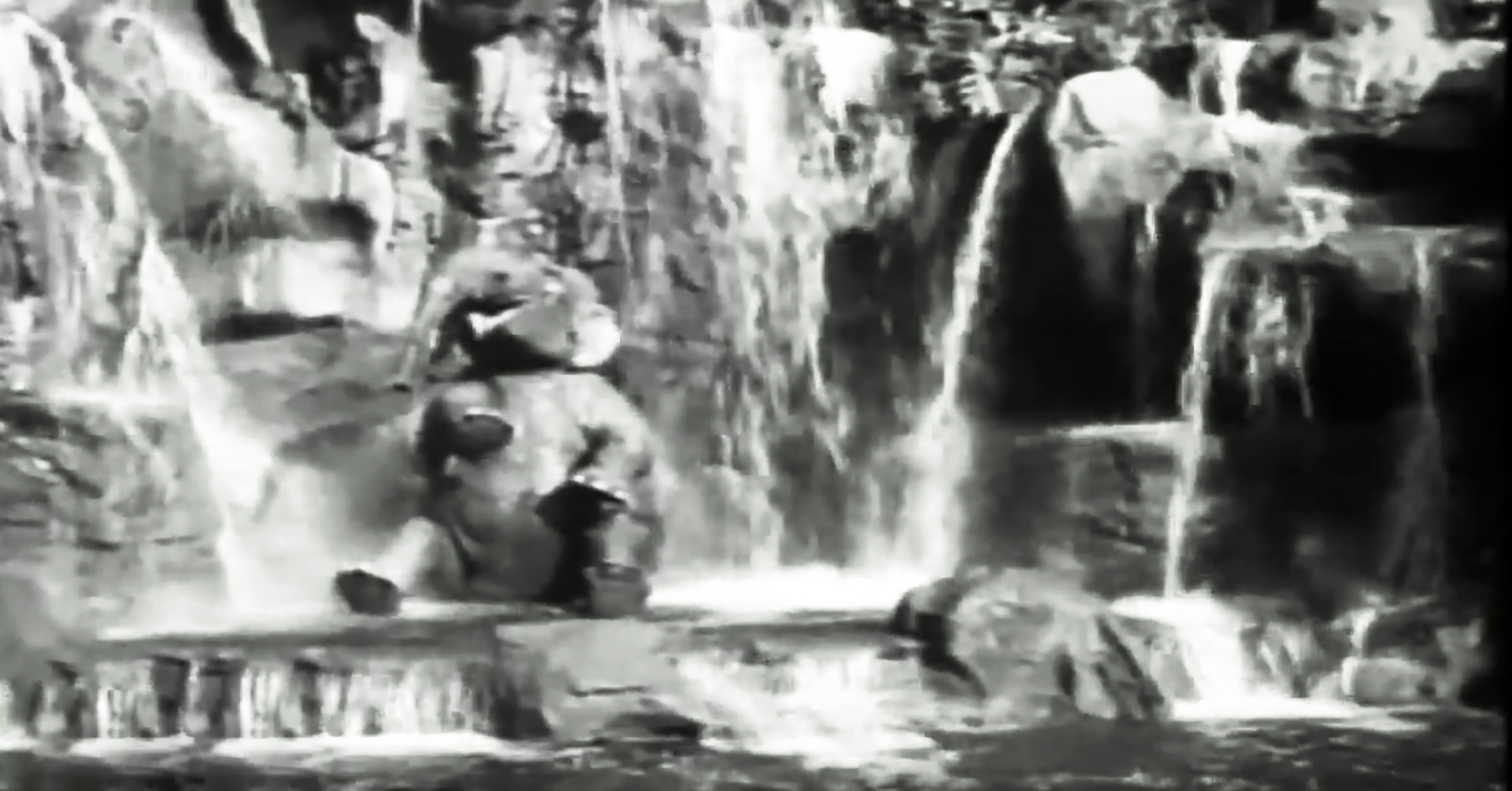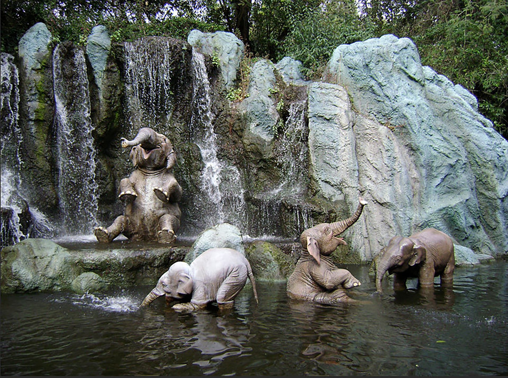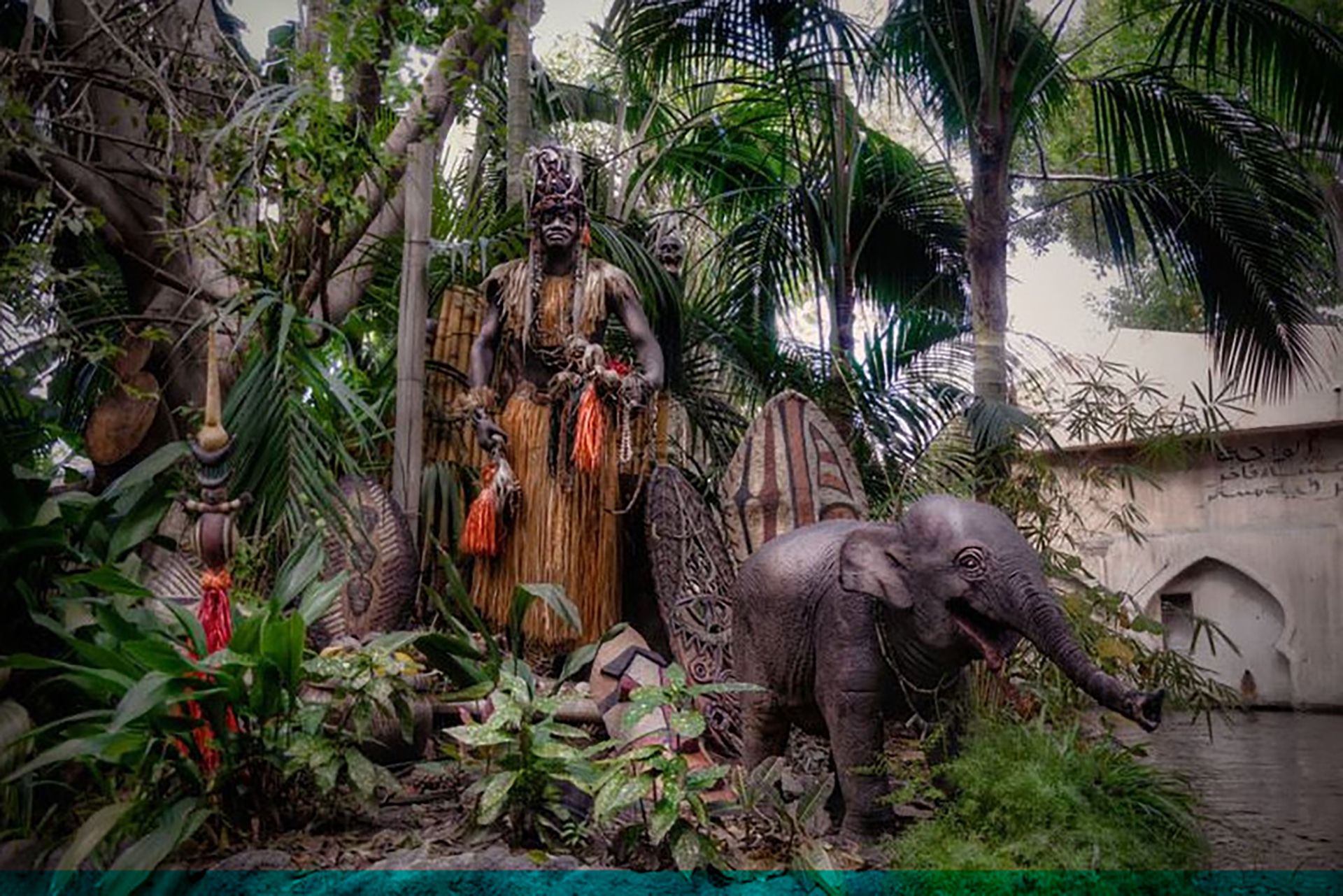 You now enter headhunter territory, seeing natives dancing around in a hut, and then natives on the shore, ambushing the boat. From here is the “Backside of Water” behind Schweitzer Falls. The boat enters the Mekong River, and through the ancient Cambodian temple ruins. Inside the temple, giant spiders and king cobras watch as you float by. After exiting the temple, you come across an elephant bathing pool where numerous elephants are relaxing in the water. You are warned by the skipper you could get a “bath” by an elephant as it squirt’s water from its trunk. The trip ends as you pass by Chief Name’ (More on WDW’s Chief’s name later), head salesman who will offer two of his shrunken heads for one of yours!