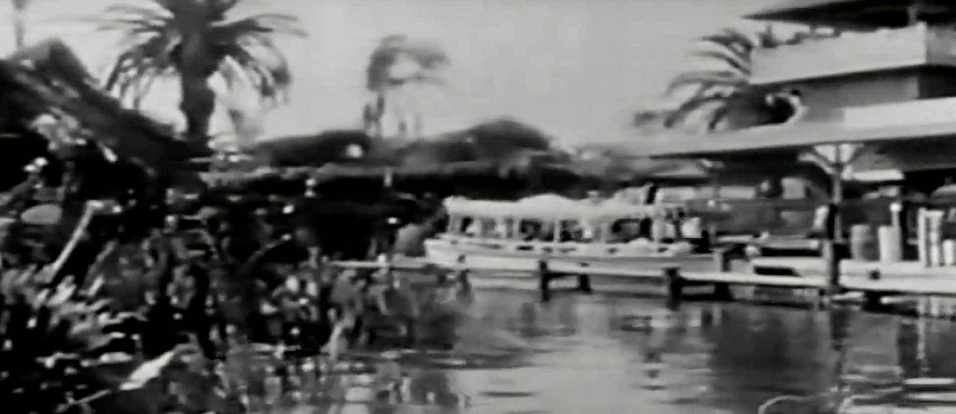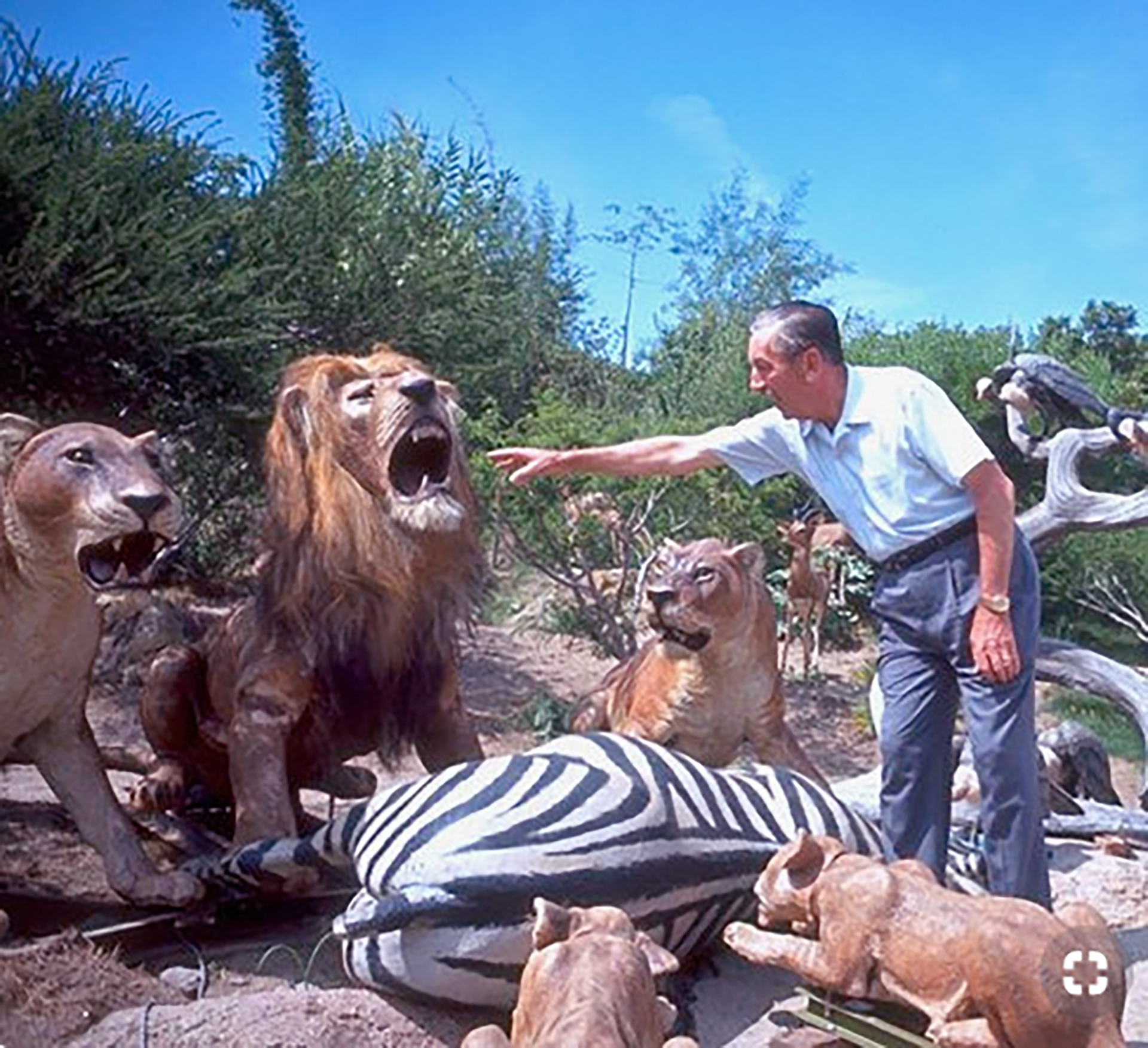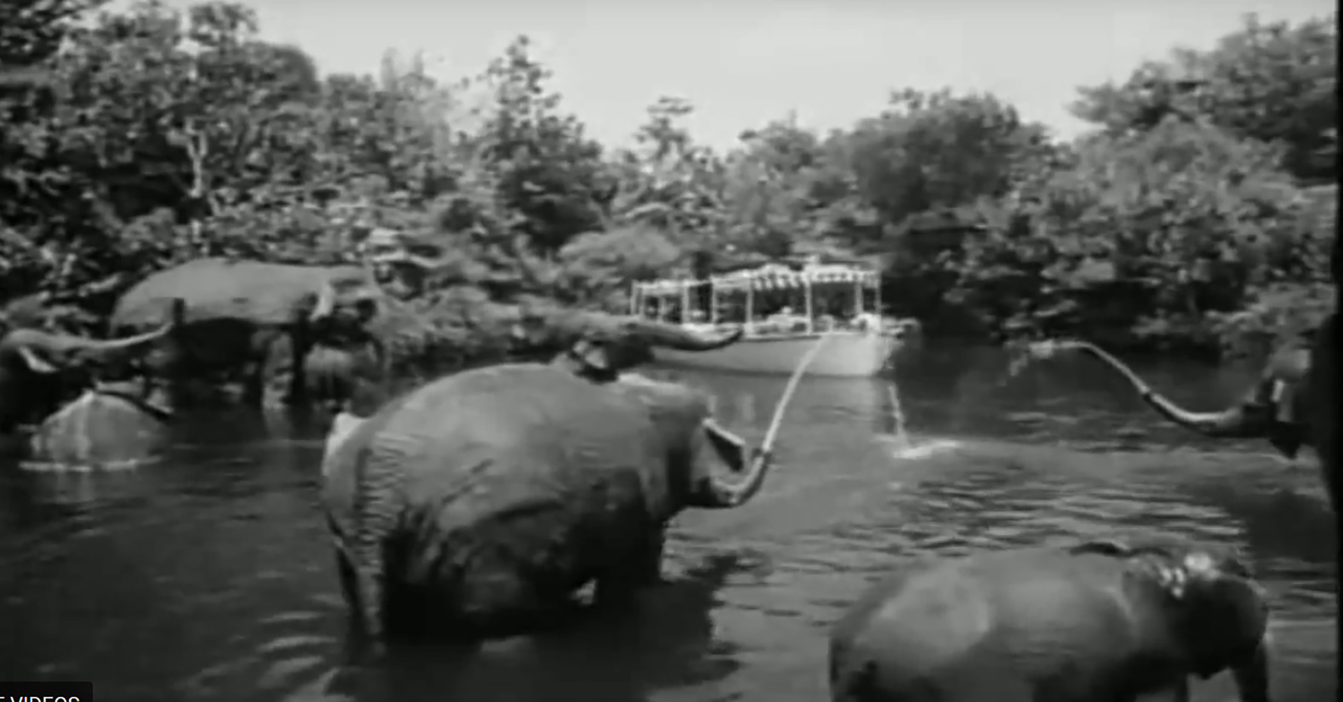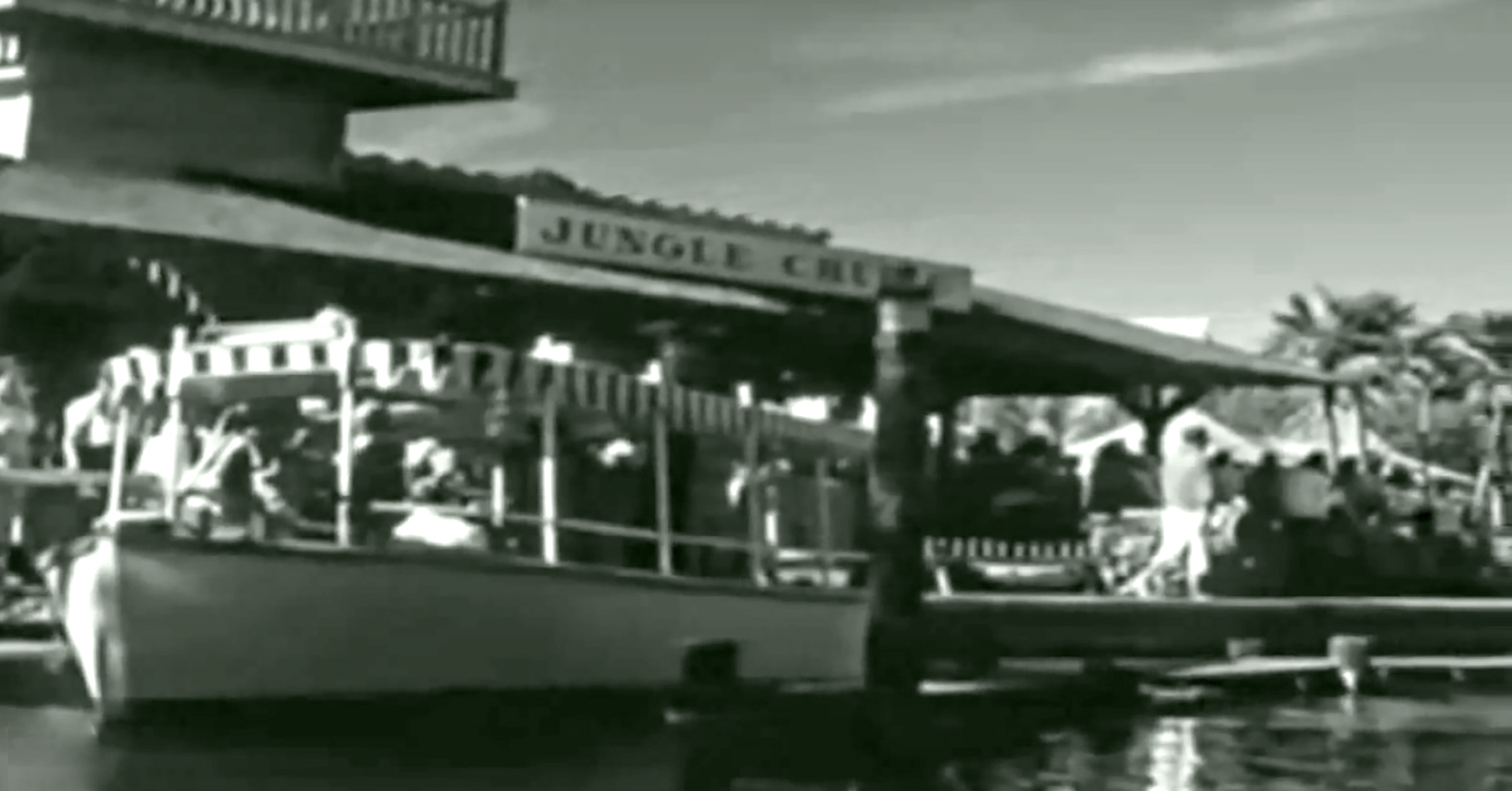 This classic Adventureland attraction had its beginning musings, not based on a Disney film, but on the film “The African Queen” and to a lesser extent, one of Walt Disney’s True Life Adventures, “The African Lion” about a pride of Lions in the wild. This attraction gave Walt and his team lots to think about. The original plan was an educational trip through the different jungles and major rivers of the World, with a narration of the flora and fauna during the tour. Walt wanted live animals for the attraction, but soon realized that they would probable wander around, never staying in the areas needed, and sleep during the day. He then had audio-animatronic replicas constructed in their stead. The comic spiel we all love today did not come until 1962, the initial monolog was more akin to a tour guide speech about a nature documentary.
