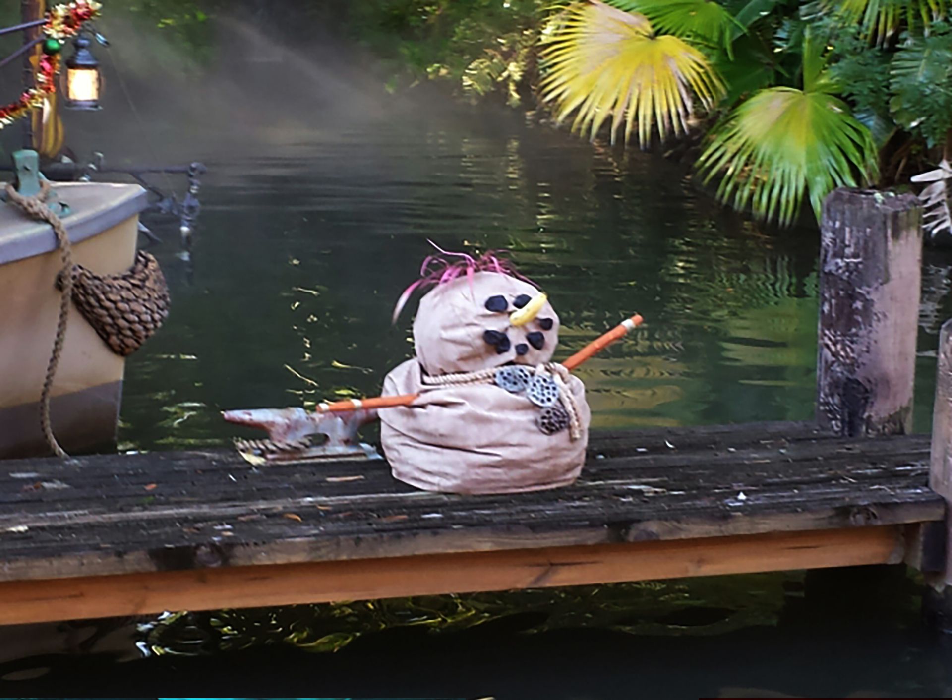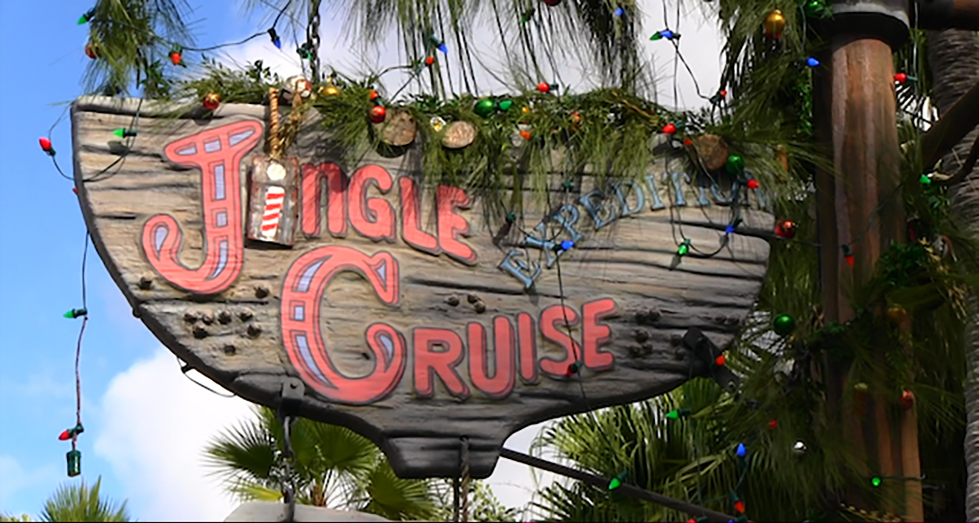 Facts…The boats used are facsimiles of the 1930s British explorers tramp steamers used in the film “African Queen”. They were originally spotless and brightly painted, but in 1993, repainted and “weathered” in anticipation of Indiana Jones Adventure, as in the Walt Disney World attraction. In 2013 Christmas season, a “Jingle Cruise” overlay was incorporated. Skippers employed a holiday-themed spiel and the boathouse and boats were renamed and decorated in Christmas lights. In 2014, the Jingle Cruise is re-imagined and little decorations on the boats and boathouse, but many show scenes in the jungle were adorned with Hanukkah and Christmas decorations. The Cruise is given a new back-story… A shipment of holiday supplies intended for the skippers crash-landed in the jungle instead, and the skippers are taking their passengers out to go find the decorations! In 2015 using the same boat names, a new scene was added… A giant snowmen and snowflakes on the termite mounds by the African Veldt. In December, 2015 a new Jungle Cruise themed restaurant opened in Walt Disney World called the Skipper Canteen. The new eatery developed the Jungle Navigation Company storyline, making Dr. Albert Falls the founder of the company in 1911, and his granddaughter Alberta Falls taking charge of the Company and Cruise in the 1930’s. And the Jungle Cruise was an opening day attraction in Disneyland and Walt Disney World.